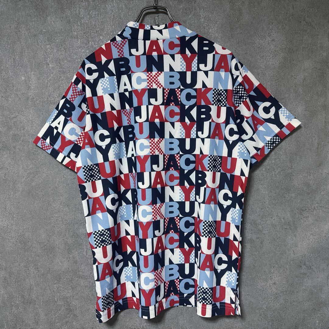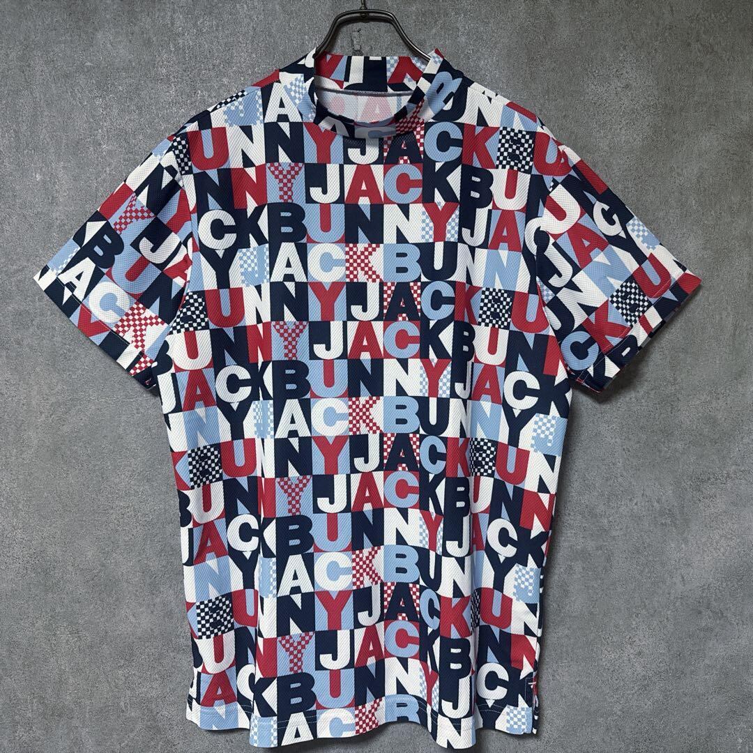 ・ Jack Bunny ジャックバニー 総柄 モックネック シャツ マルチカラー メンズ 半袖 ゴルフ ウェア