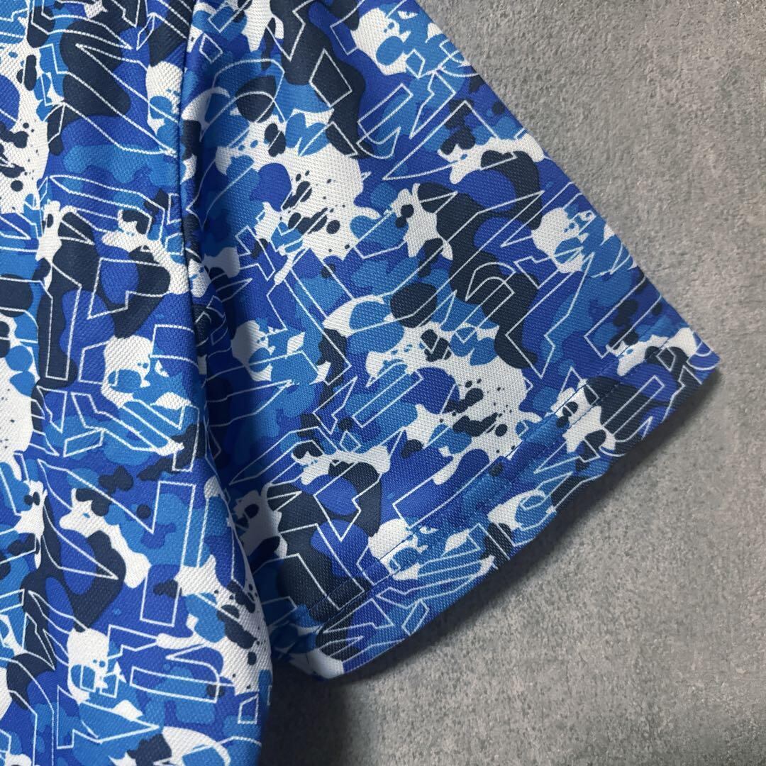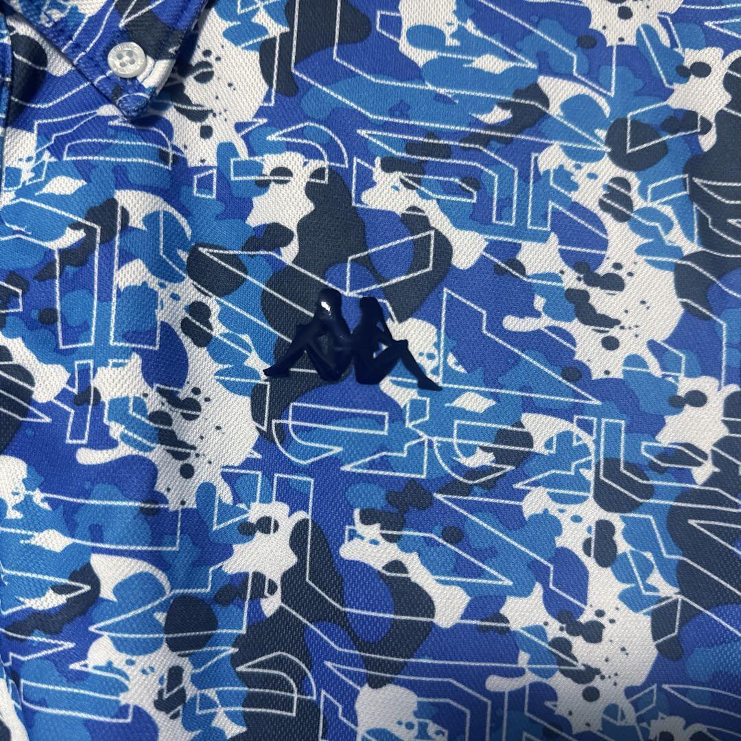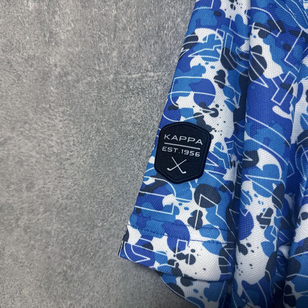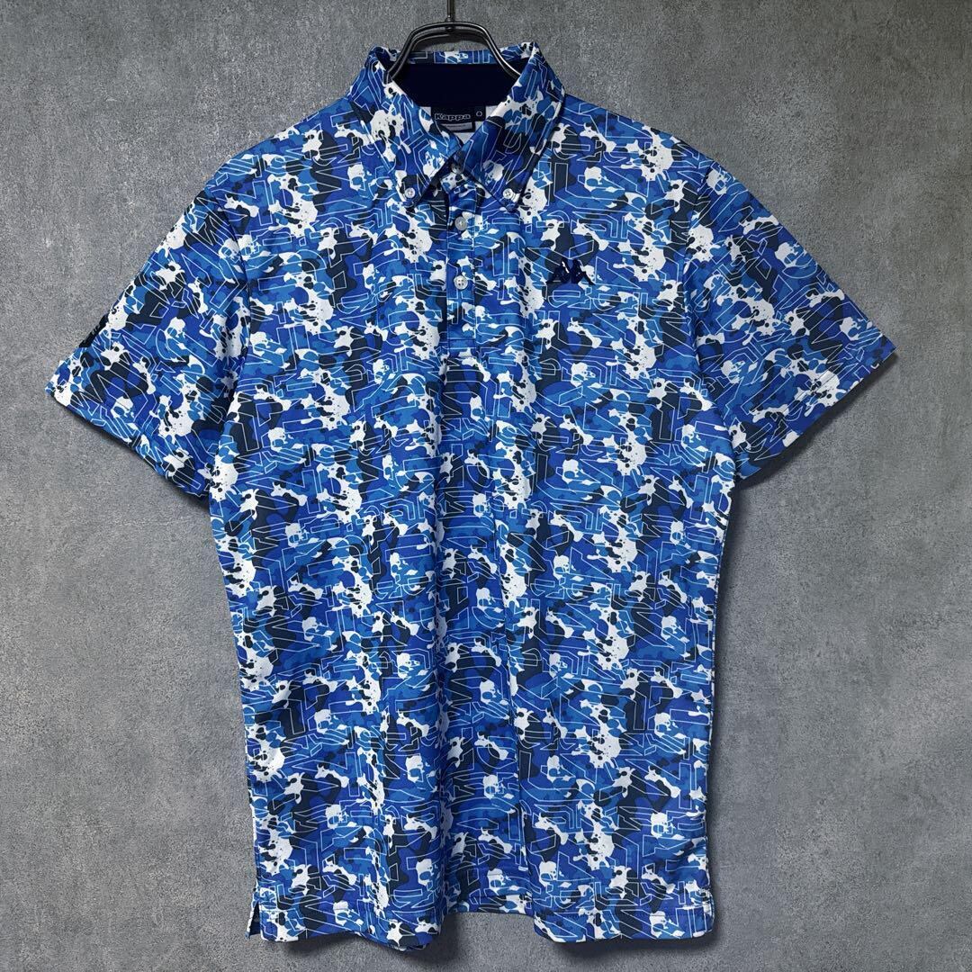 ・ Kappa Golf カッパゴルフ 総柄 ポロシャツ 半袖 ロゴ ブルー O メンズ ゴルフ ウェア 大きいサイズ