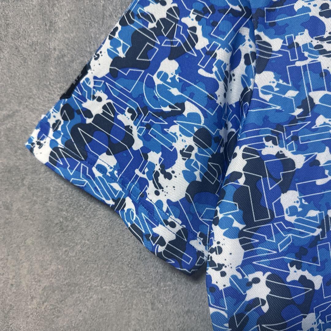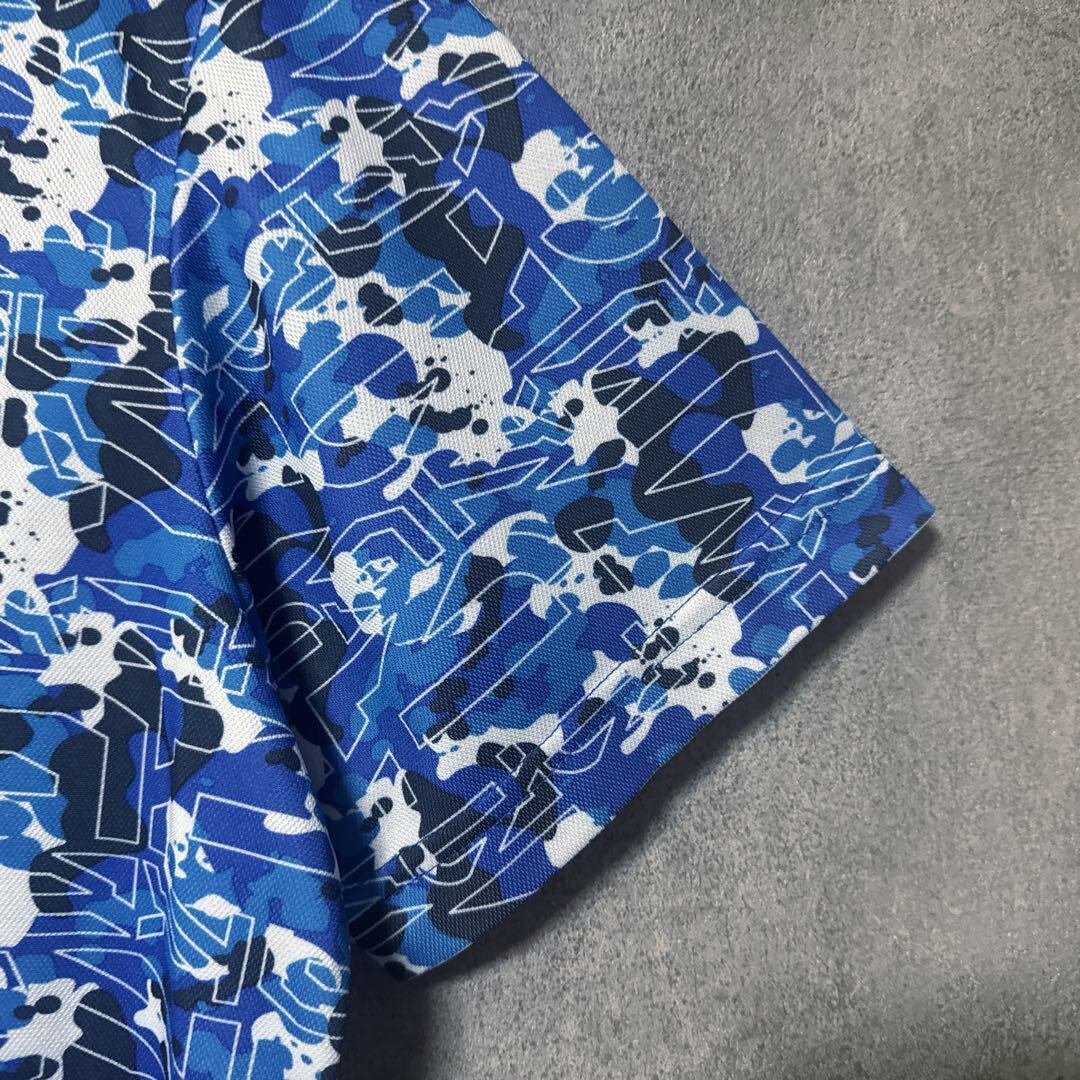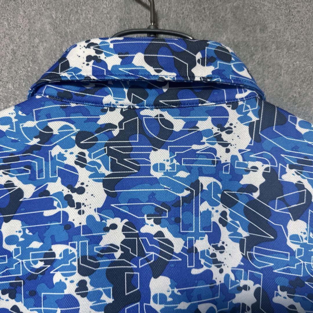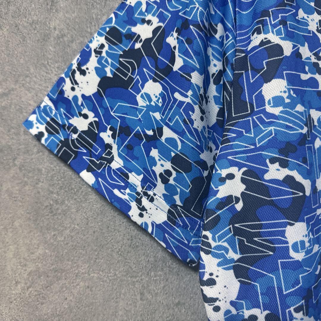 ・ Kappa Golf カッパゴルフ 総柄 ポロシャツ 半袖 ロゴ ブルー O メンズ ゴルフ ウェア 大きいサイズ