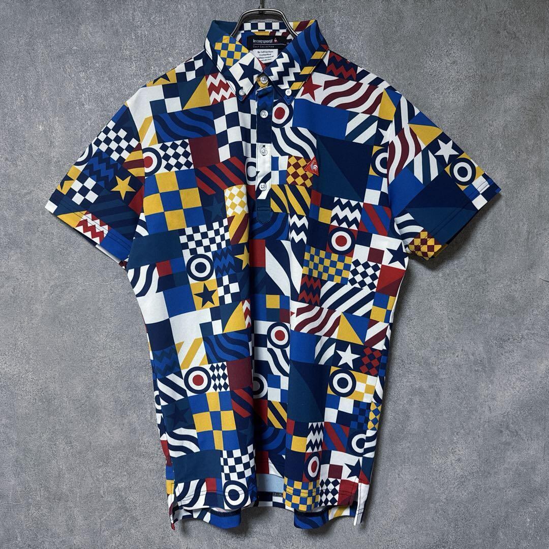 ・ le coq sportif golf ルコックスポルティフゴルフ ルコック 総柄 ポロシャツ マルチカラー ポロシャツ ゴルフ ウェア 半袖 人気 メンズ 大きいサイズ