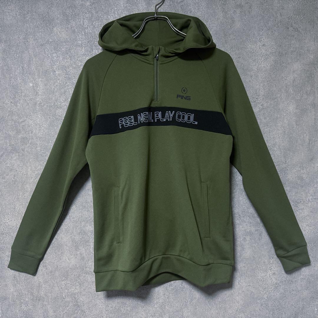 ・ 【新品】 PING ピン ハーフジップ パーカー フーディ ロゴ グリーン S ゴルフ ウェア ゴルフウェア レディース 人気 未使用 タグ付き