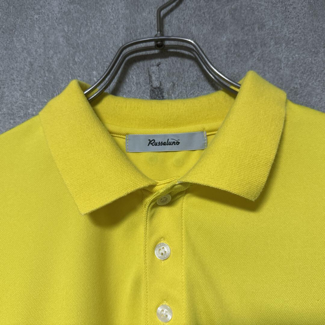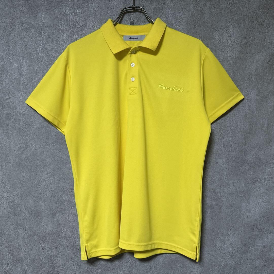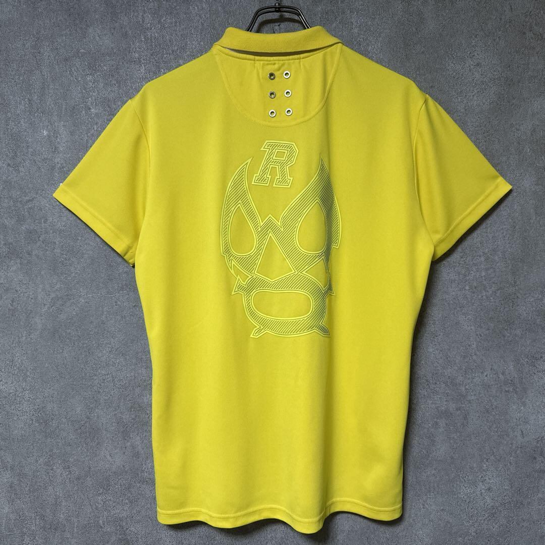 ・ Russeluno ラッセルノ ビッグ ロゴ ポロシャツ ルチャマスク イエロー 4 Mサイズ メンズ ゴルフ ウェア ポリエステル