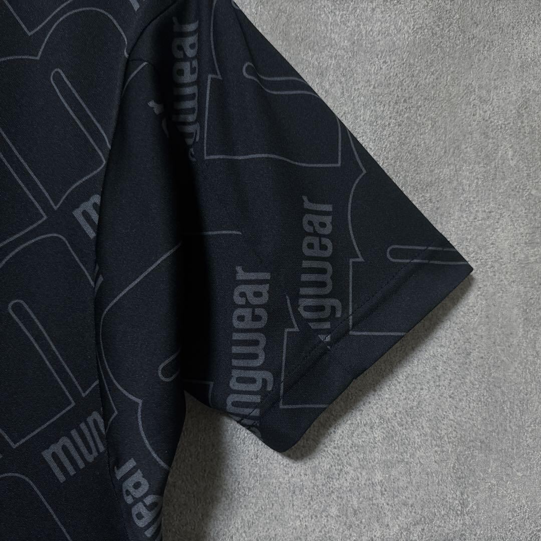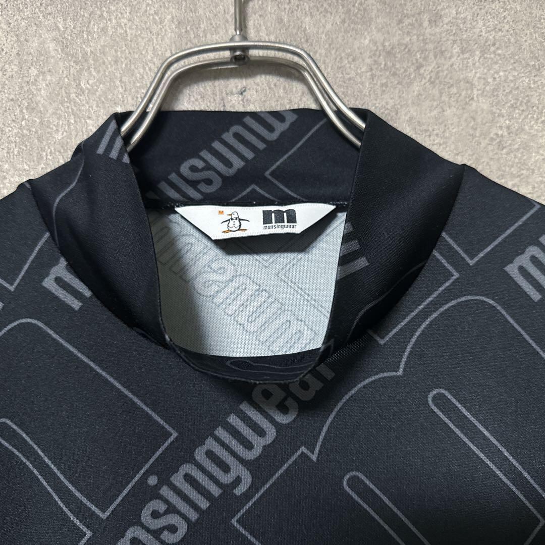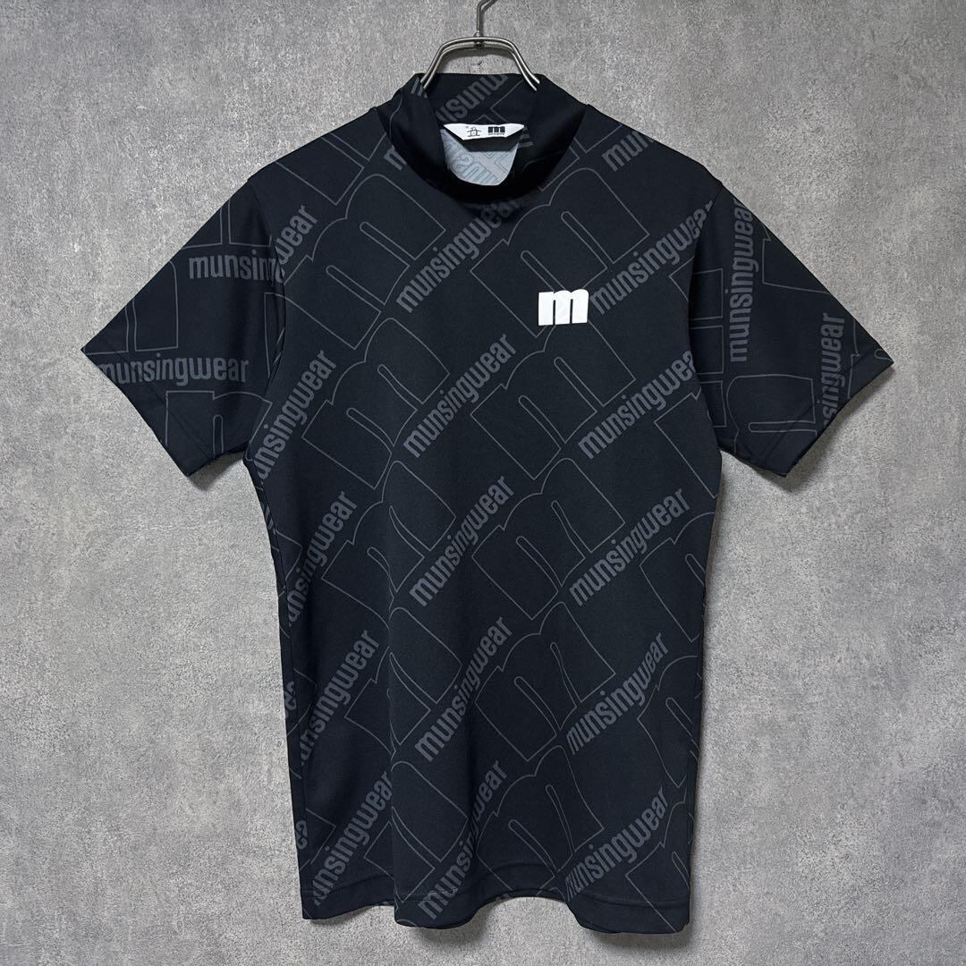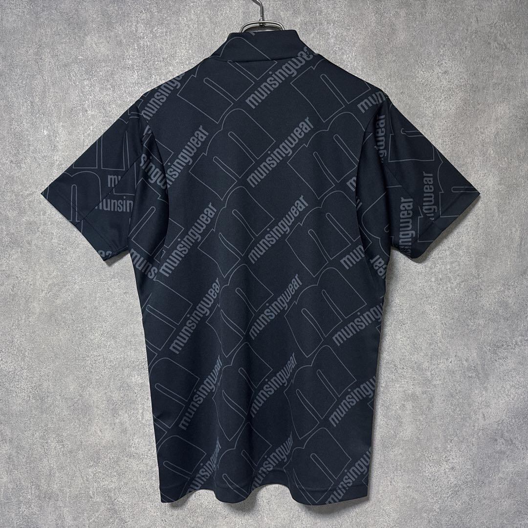 ・ Munsingwear マンシングウェア ビッグロゴ モックネック ブラック M メンズ シャツ 半袖 ゴルフ ウェア 美品 総柄