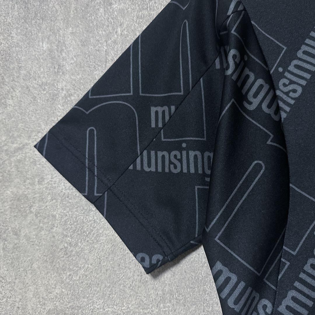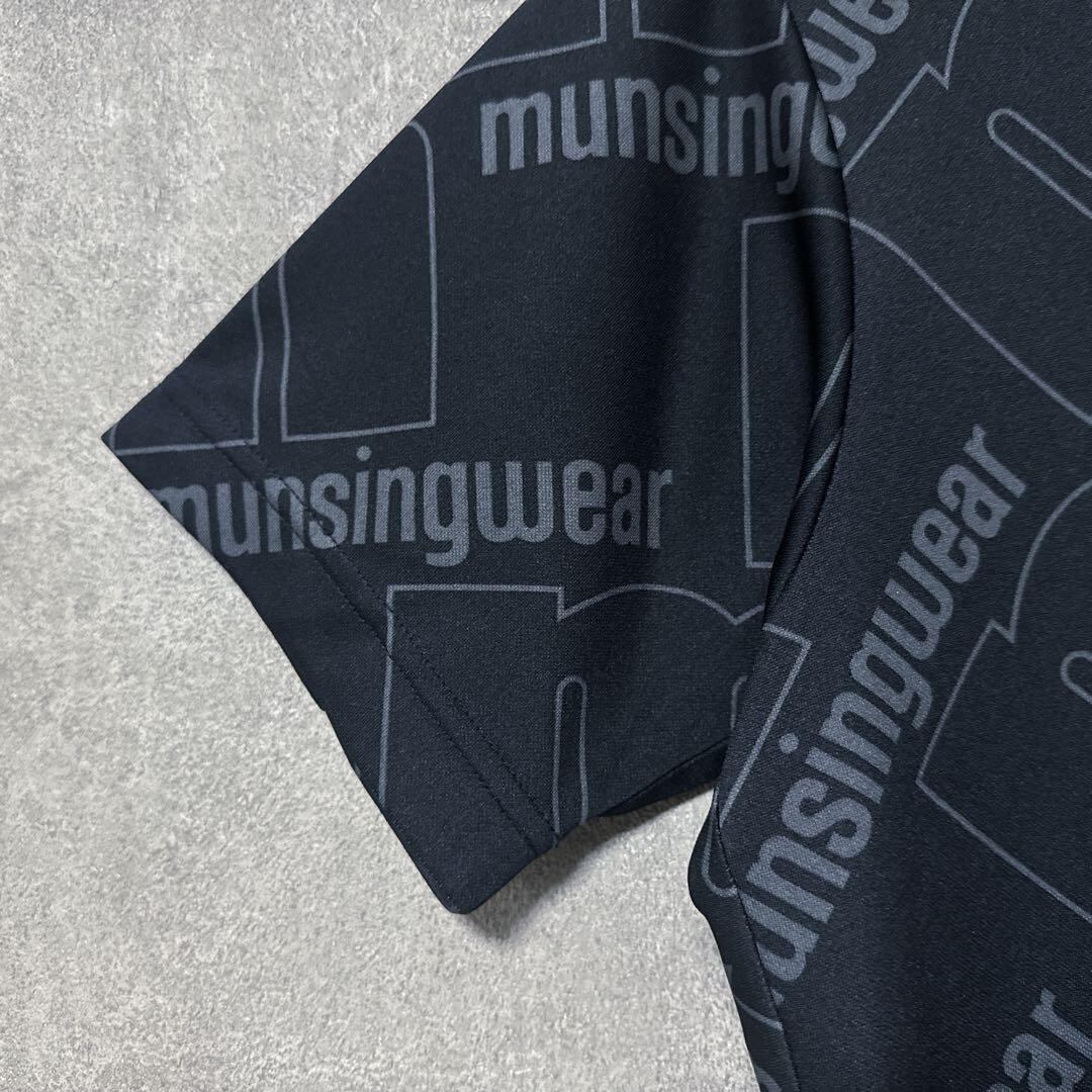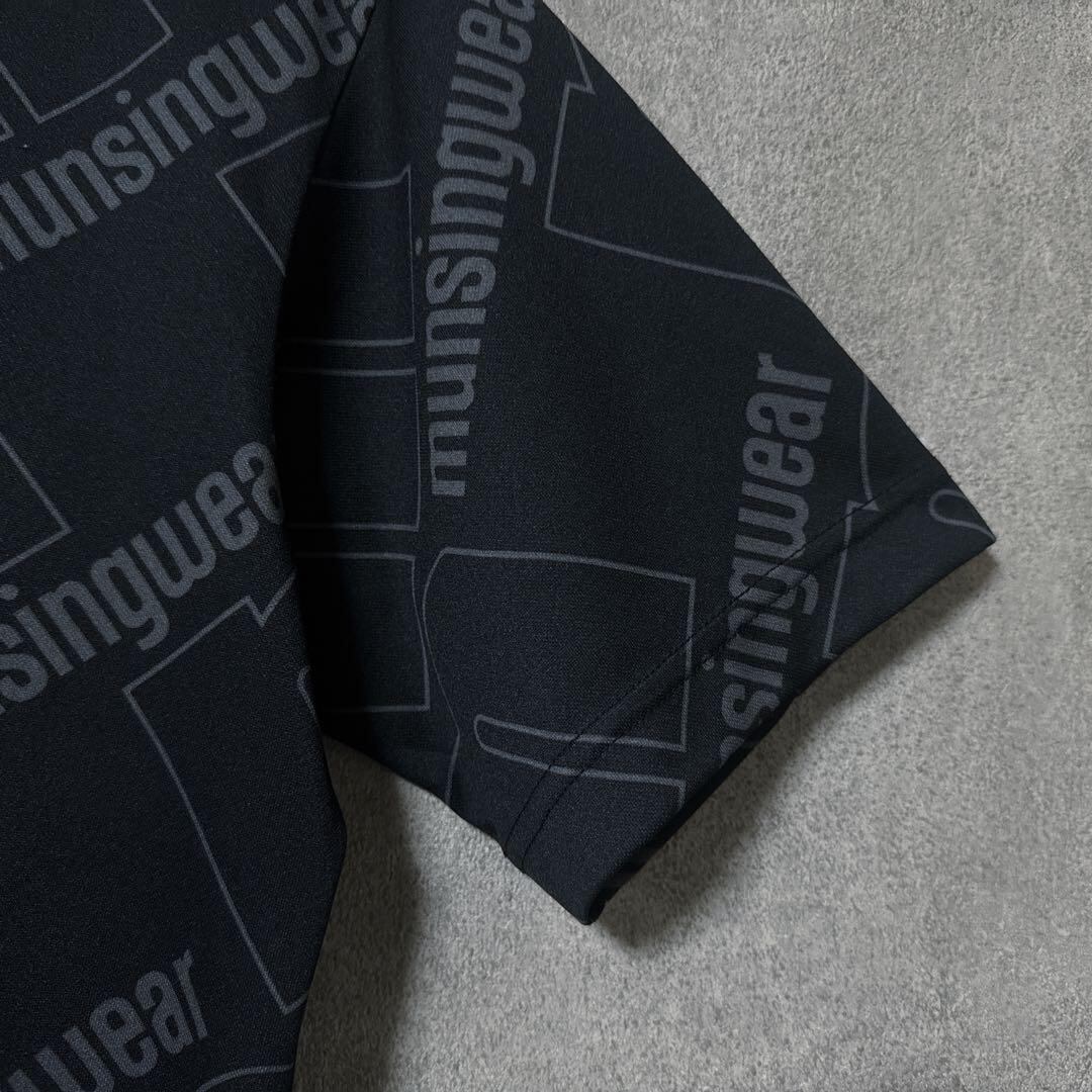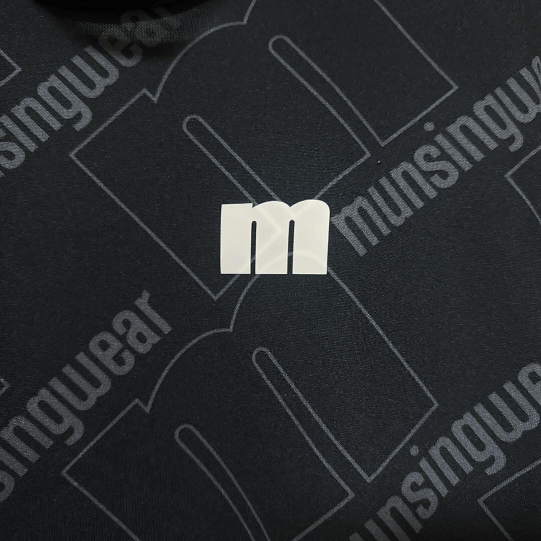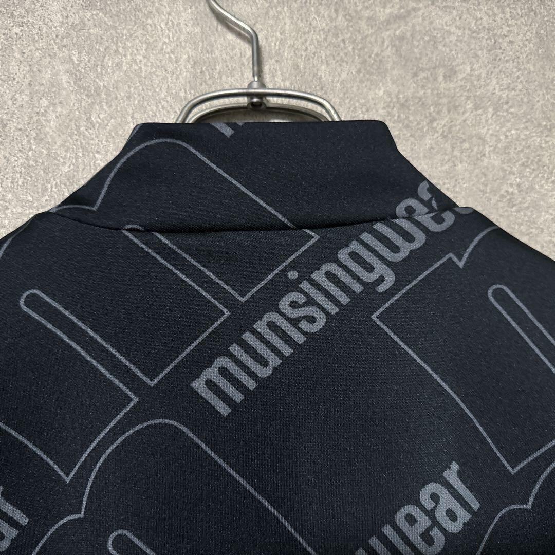 ・ Munsingwear マンシングウェア ビッグロゴ モックネック ブラック M メンズ シャツ 半袖 ゴルフ ウェア 美品 総柄