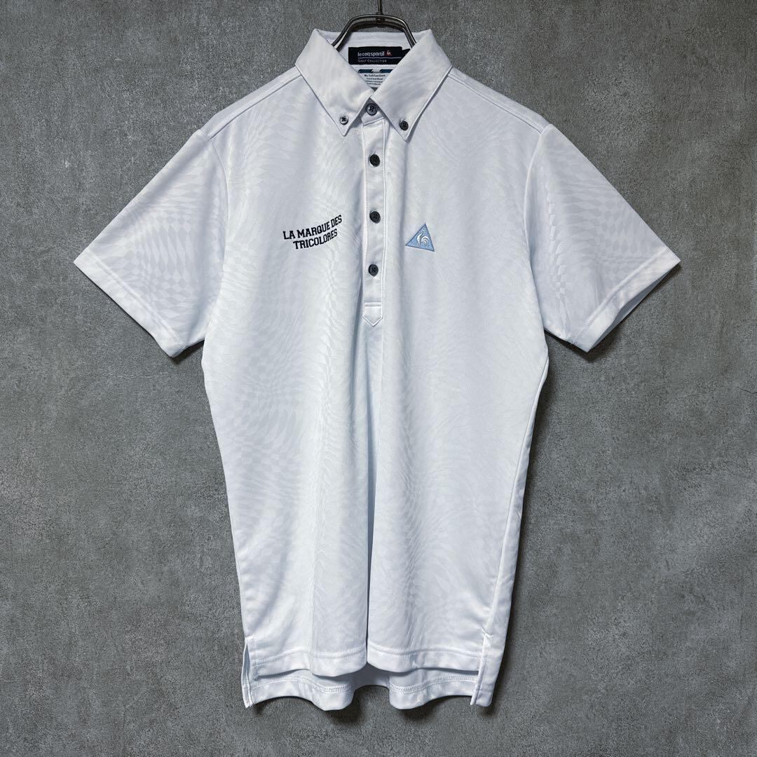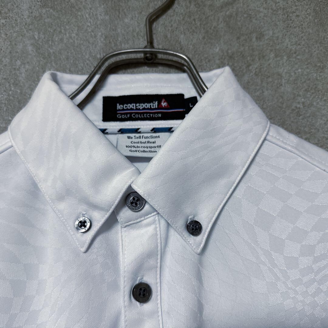 ・ le coq sportif golf ルコックスポルティフゴルフ ルコック ポロシャツ 総柄 ホワイト L メンズ ゴルフ ウェア ゴルフウェア 半袖 シャツ