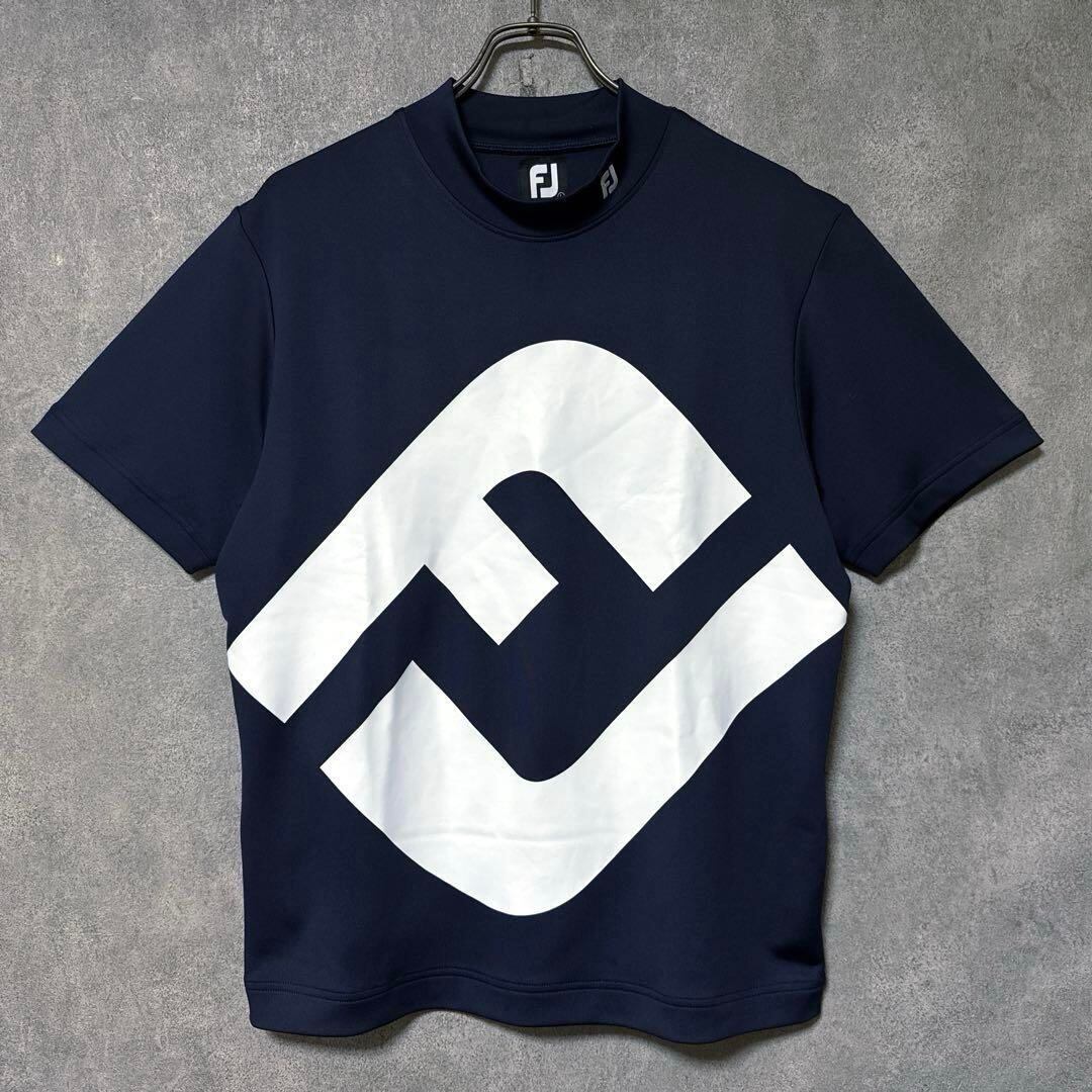 ・ FootJoy フットジョイ ビッグロゴ モックネック シャツ ネイビー L メンズ ゴルフ ウェア ゴルフウェア 半袖 スポーツ