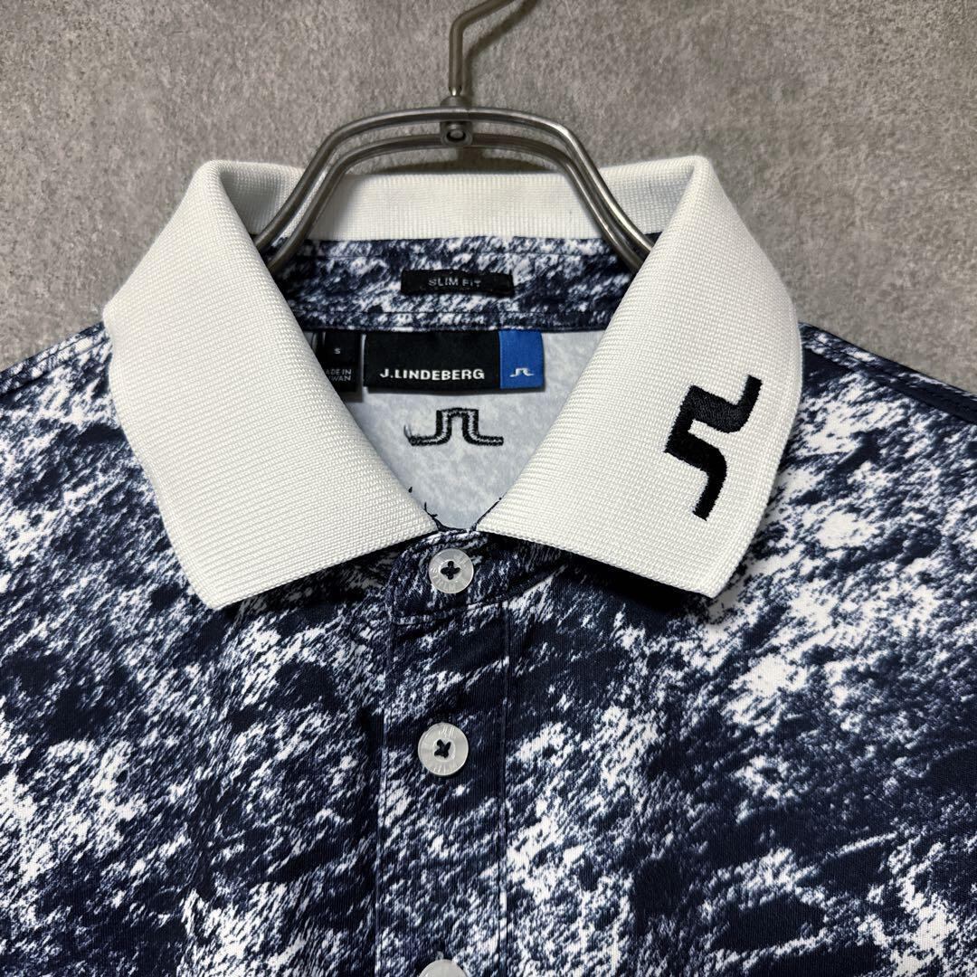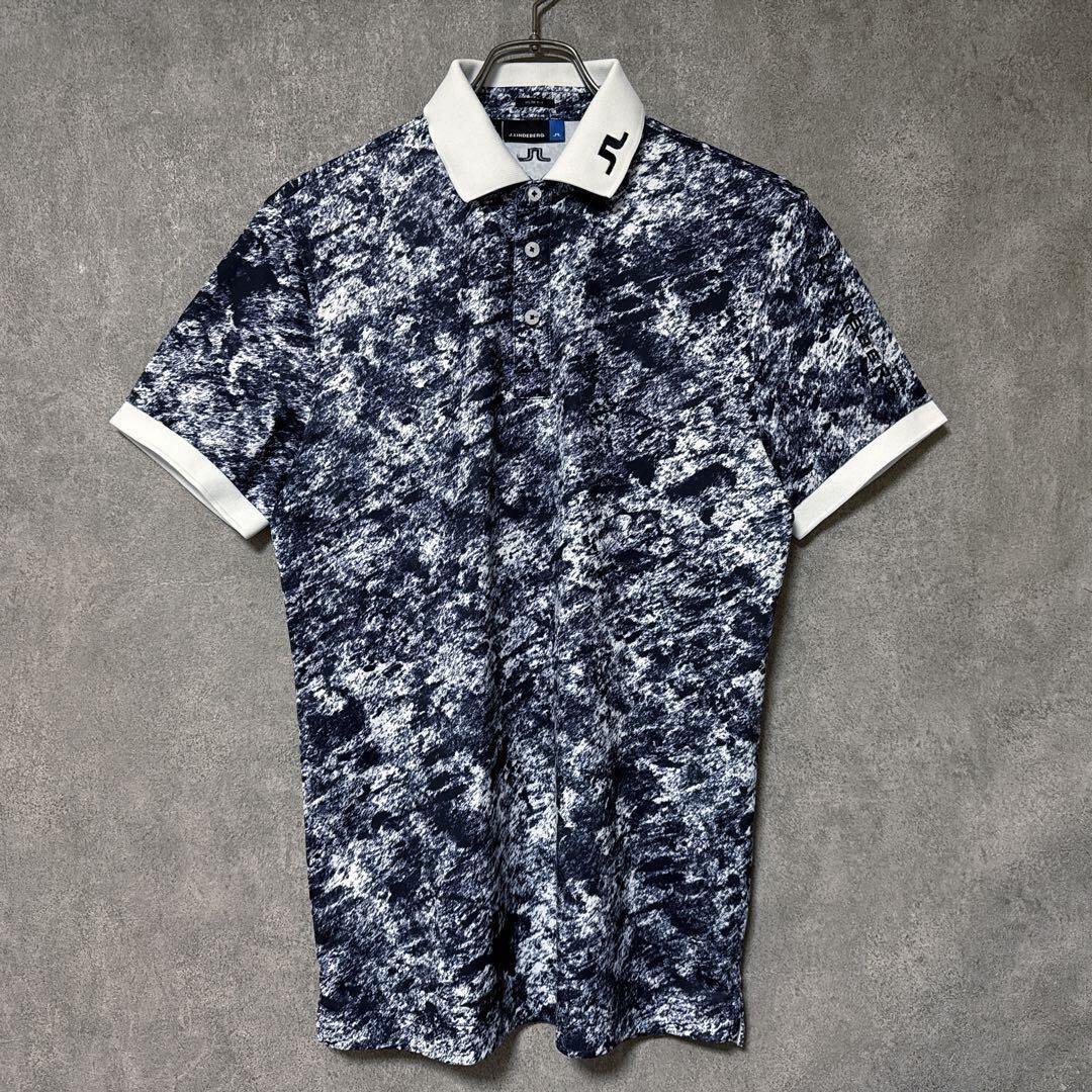 ・ J.LINDEBERG ジェイリンドバーグ 総柄 半袖 ポロシャツ ゴルフウェア ロゴ メンズ 人気 美品