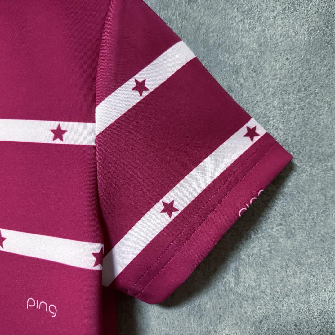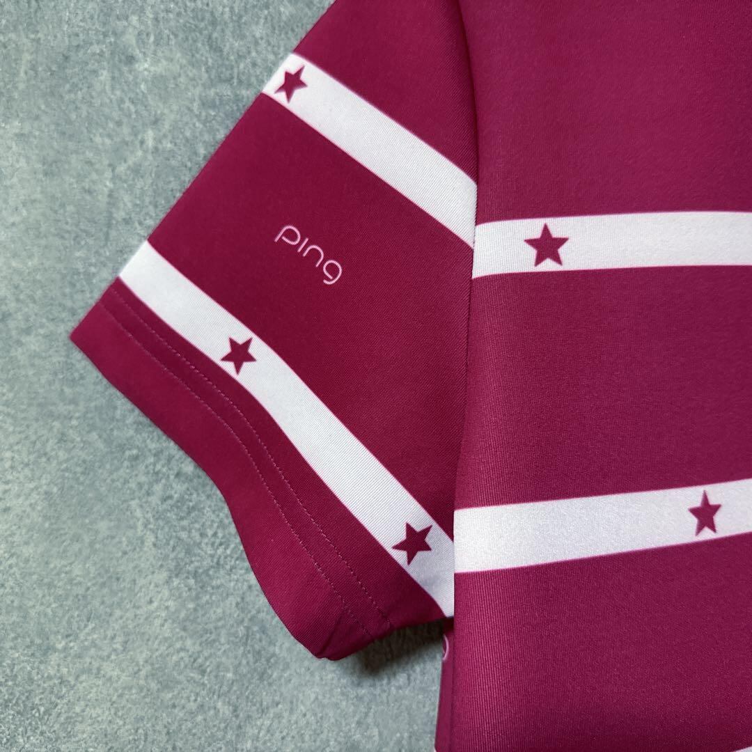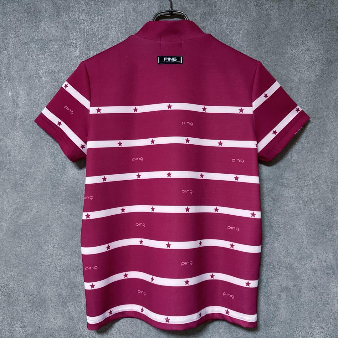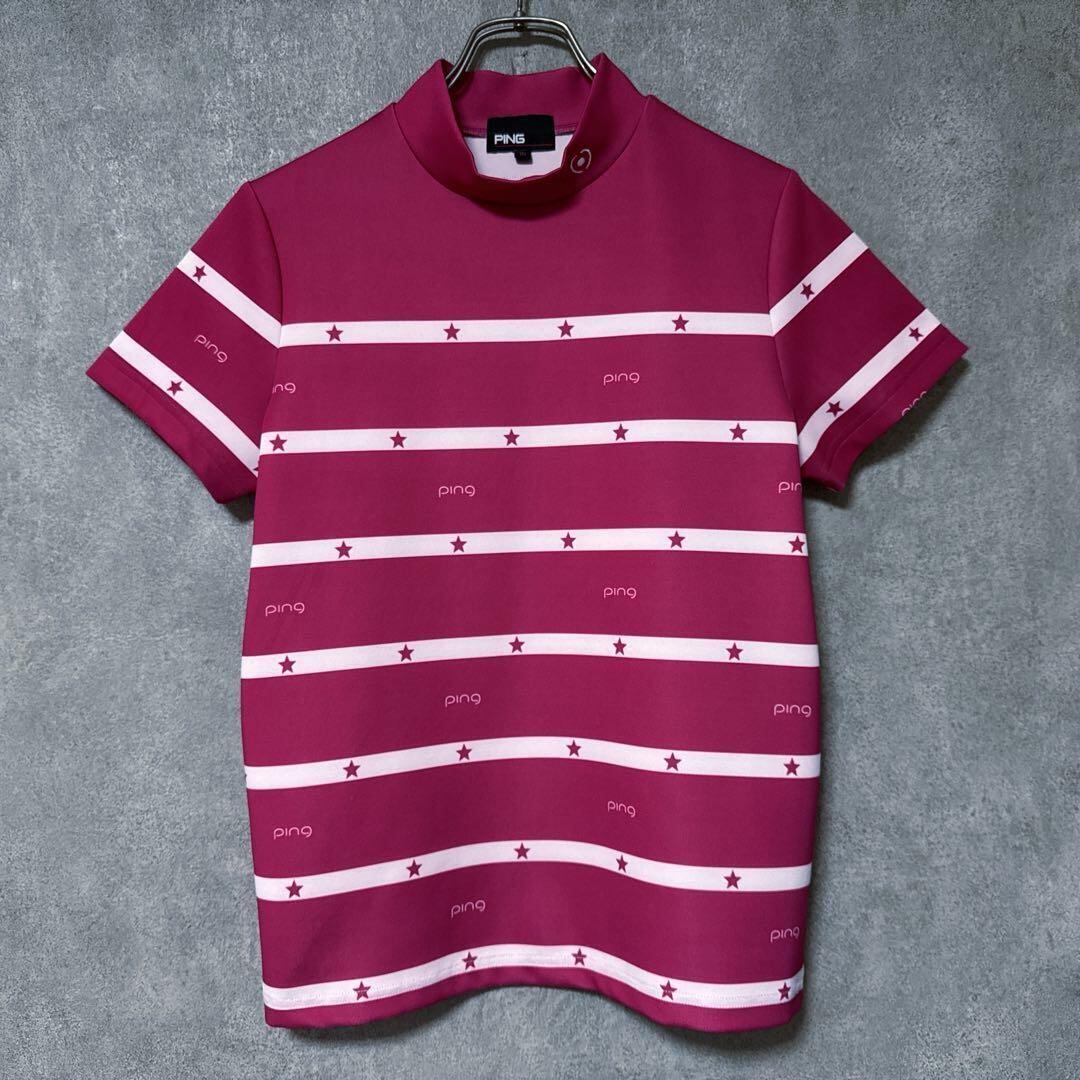 ・ PING ピン ロゴ スター柄 半袖 モックネック シャツ ゴルフ ウェア レディース