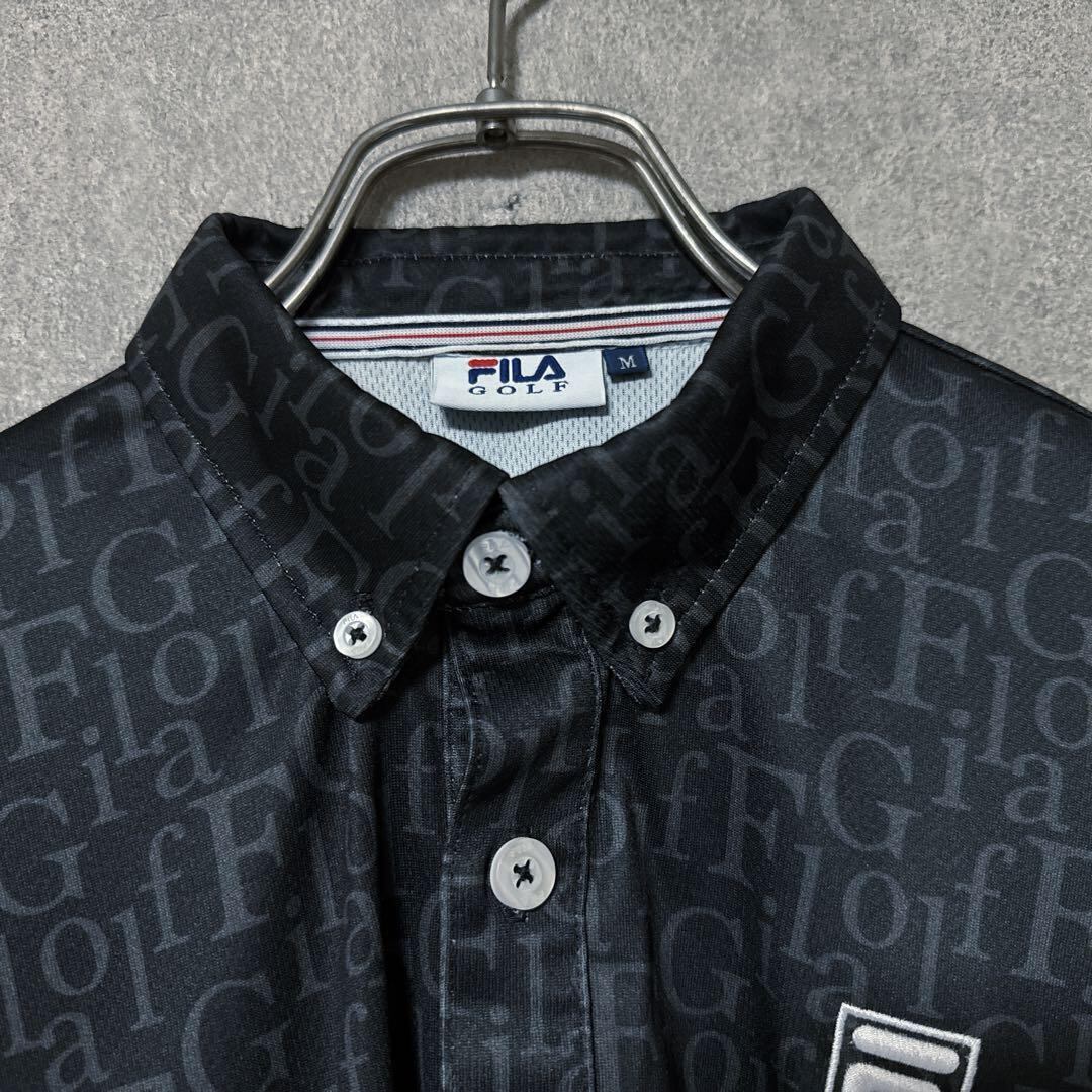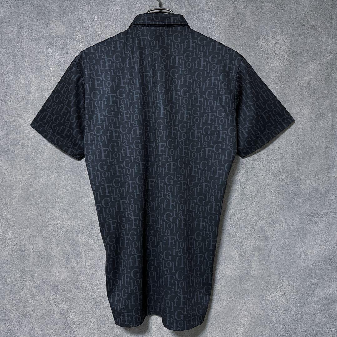 【メンズ】FILA GOLF フィラゴルフ 総柄 ロゴ 半袖 ポロシャツ ブラック M