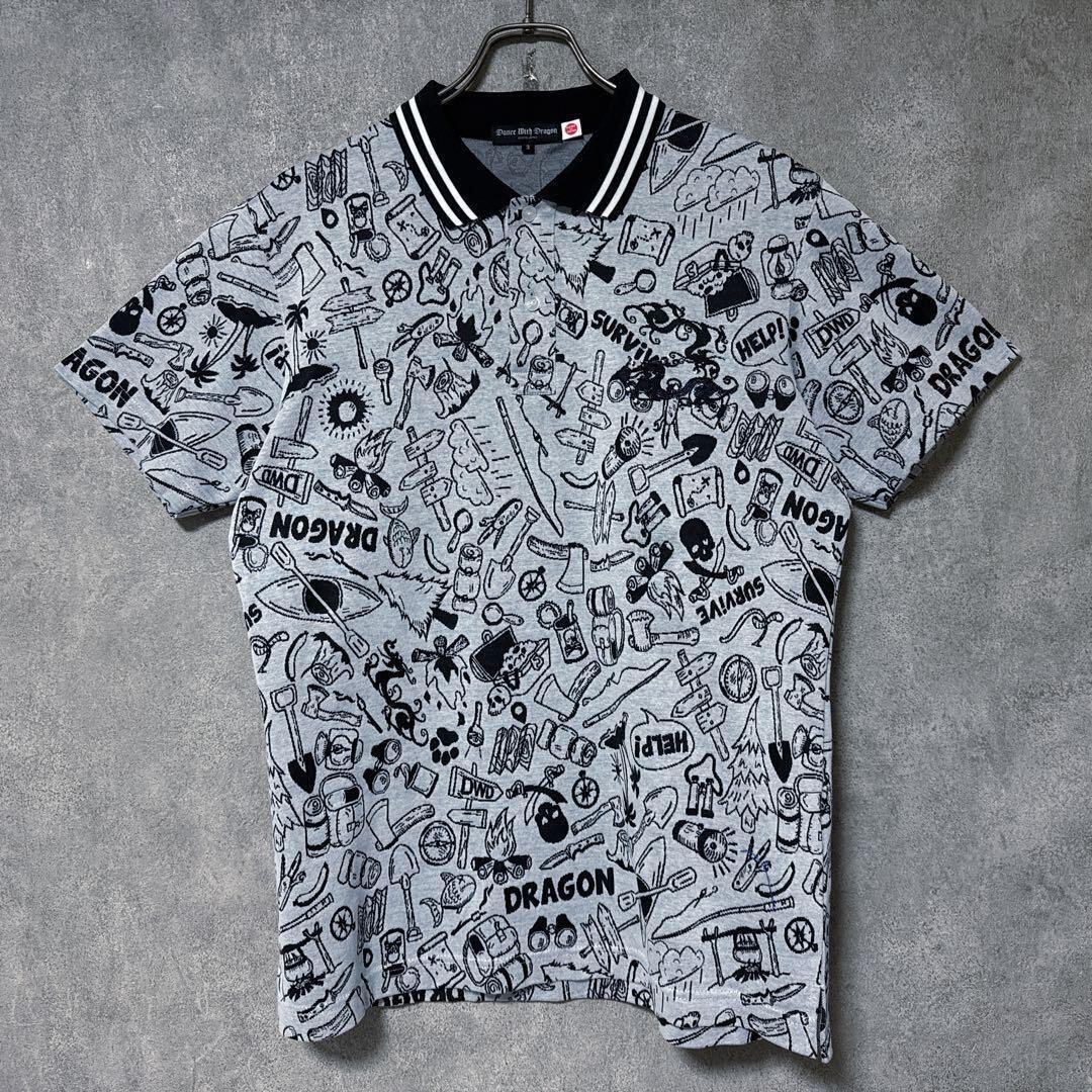 ・ DWD ダンスウィズドラゴン 総柄 ポロシャツ ロゴ ゴルフ ウェア 半袖 人気 メンズ