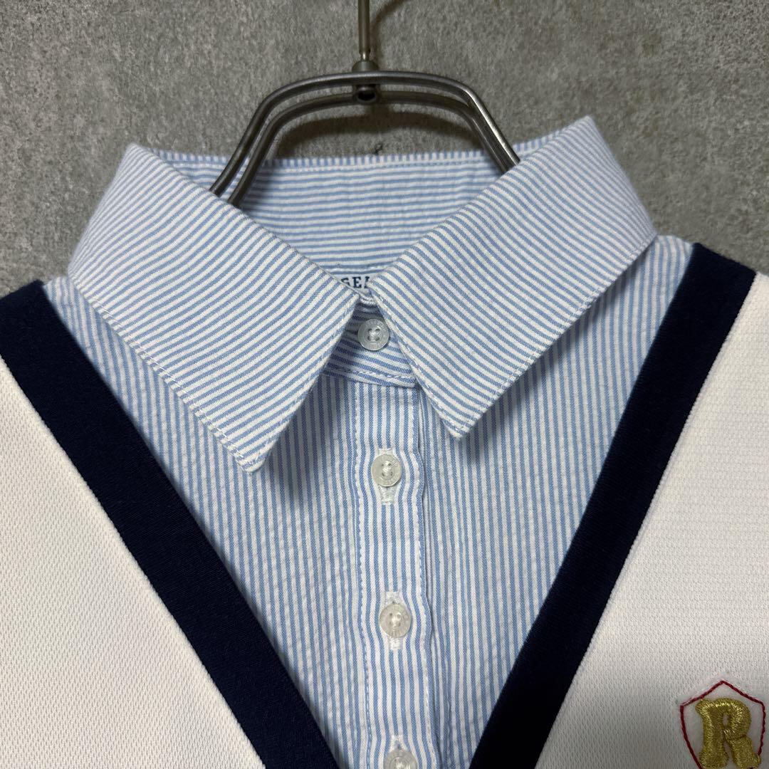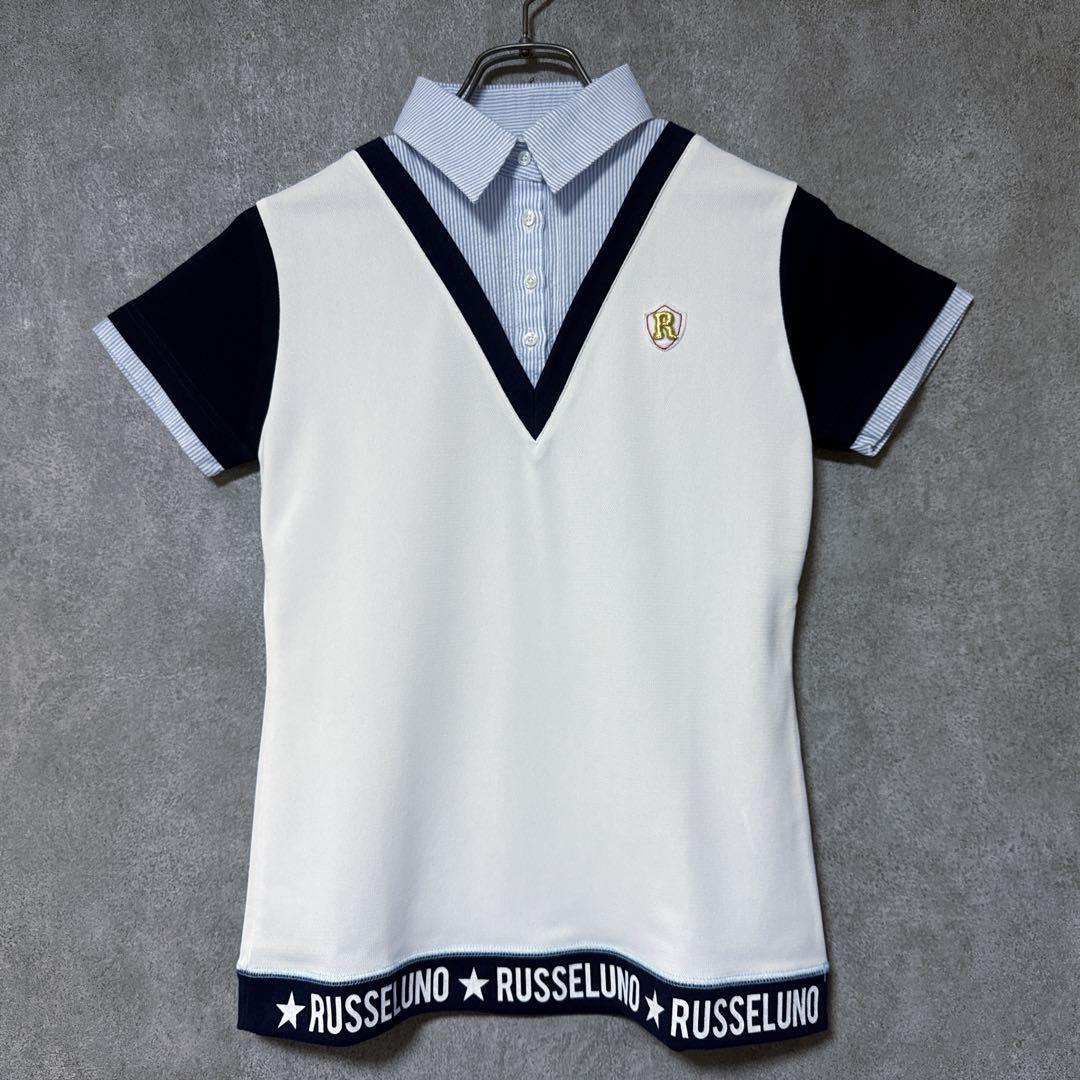 ・ Russeluno ラッセルノ 半袖 ポロシャツ 白 ホワイト 重ね着風 0 レディース 美品
