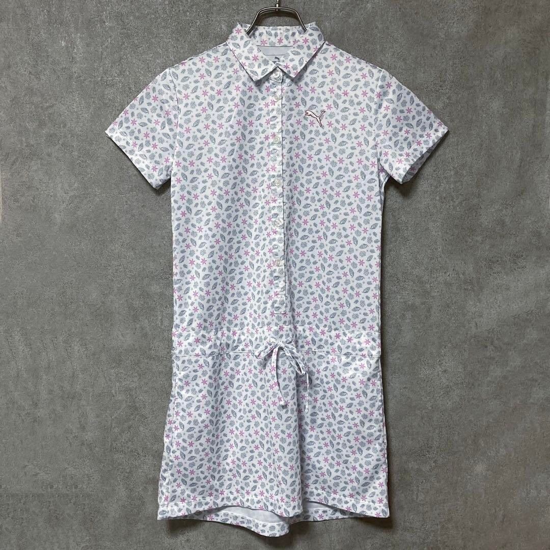・【美品】PUMA プーマ 総柄 ワンピース ポロシャツ ゴルフウェア スポーツ レディース 半袖