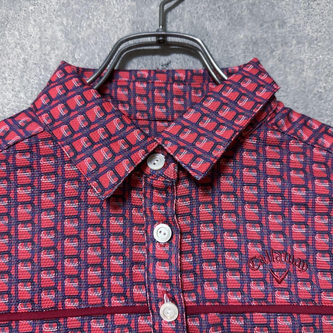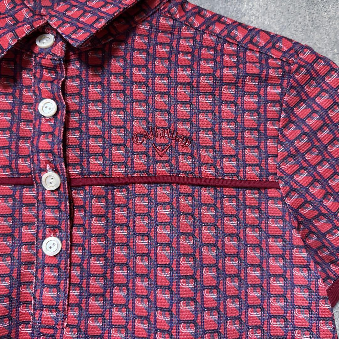 ・ Callaway キャロウェイ 総柄 ポロシャツ 半袖 ゴルフ ウェア ロゴ レディース 人気 美品