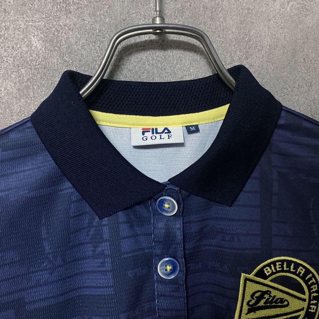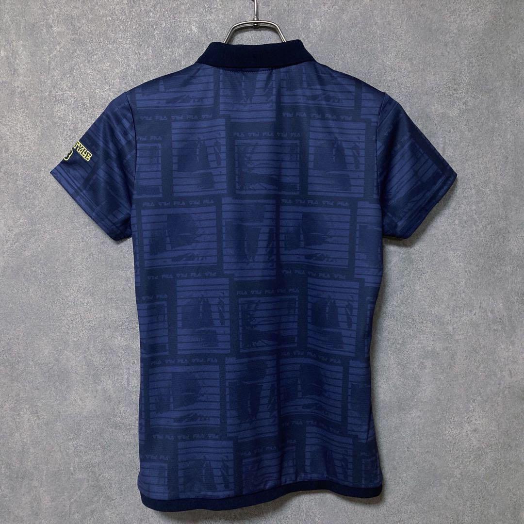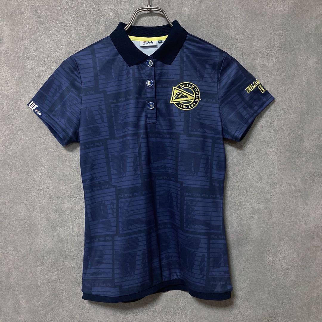 【レディース】FILA GOLF フィラ 総柄 ポロシャツ ロゴ 半袖 シャツ ネイビー M