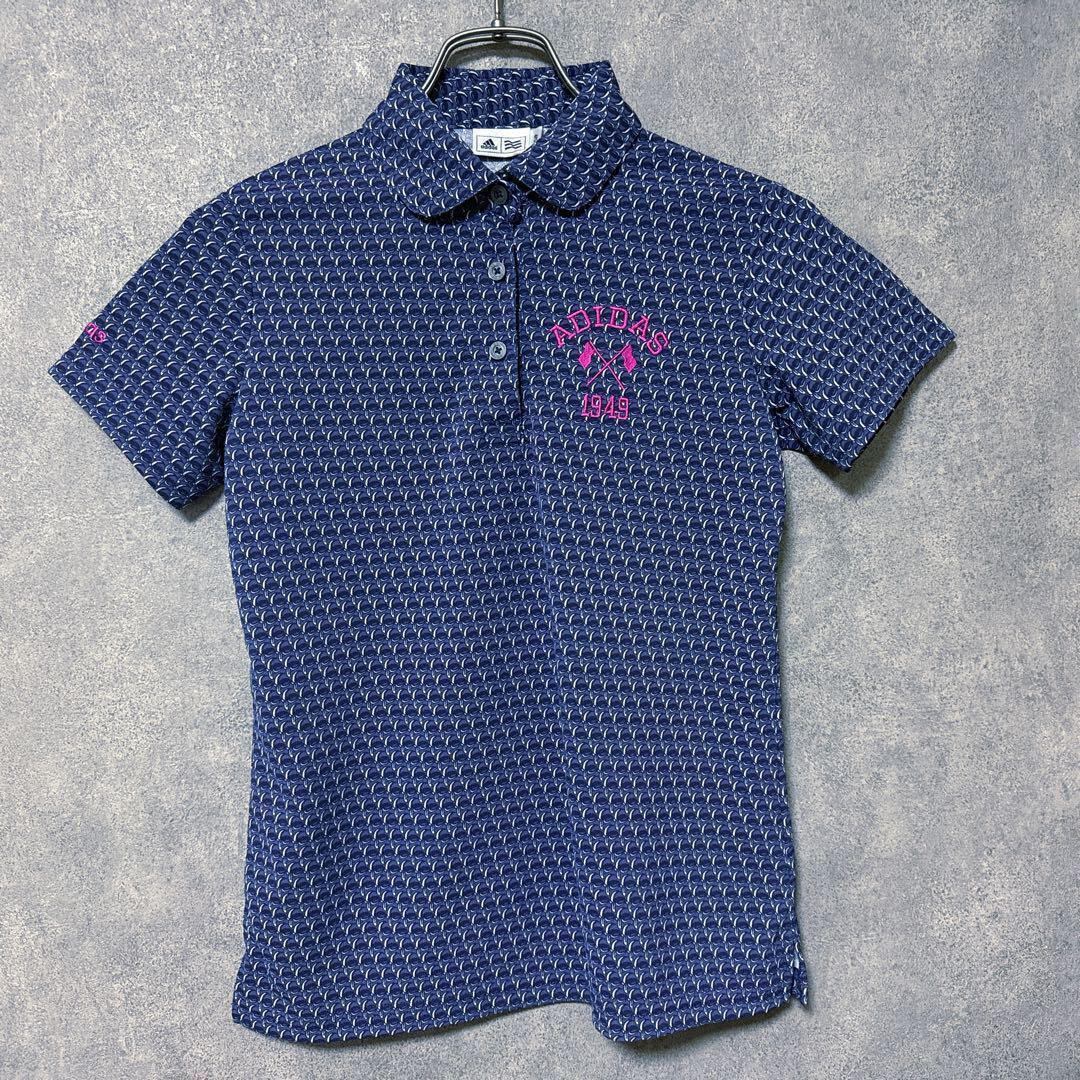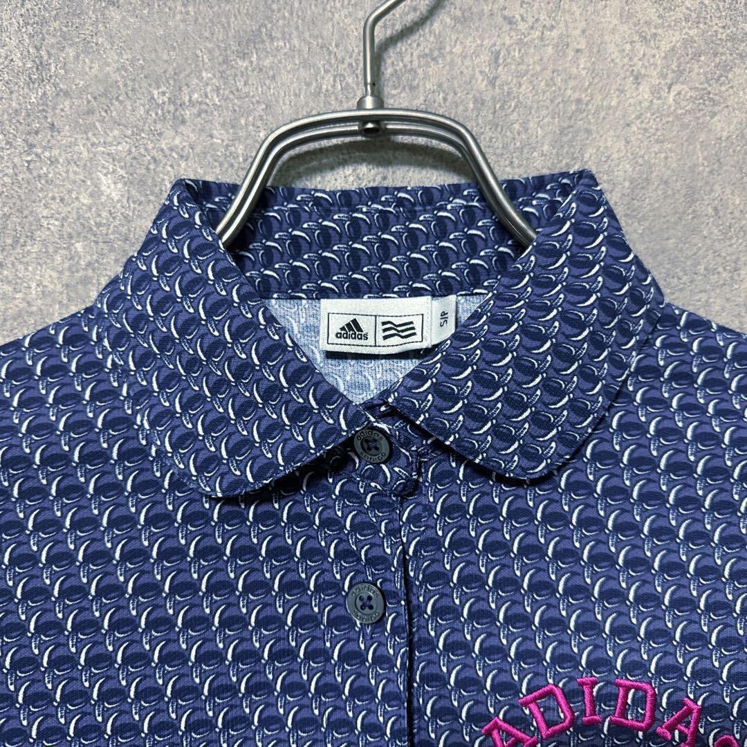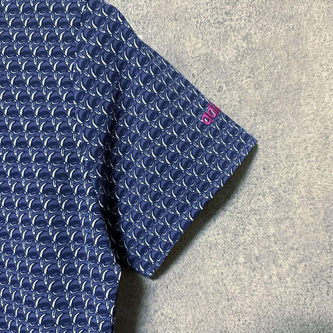 ・ adidas golf アディダス アディダスゴルフ 総柄 ポロシャツ 半袖 ゴルフ ウェア ロゴ 美品 ストレッチ レディース