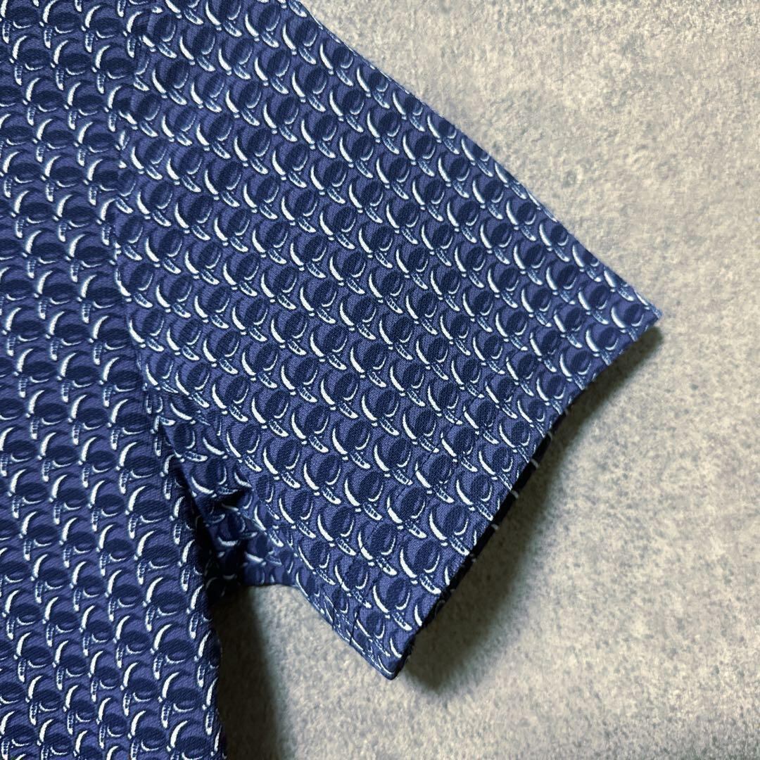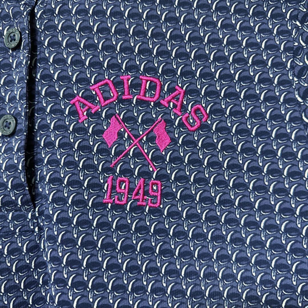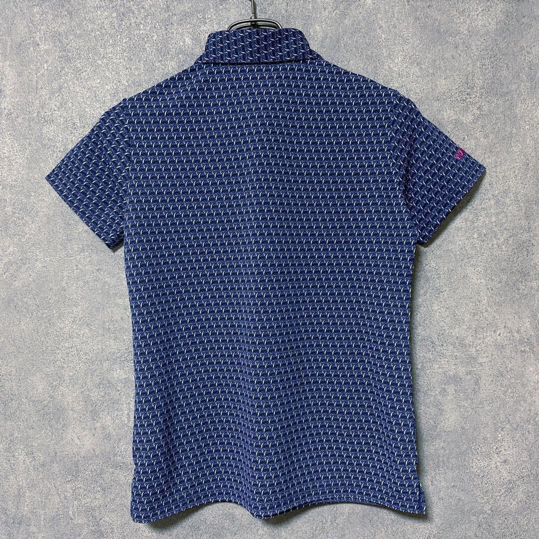 ・ adidas golf アディダス アディダスゴルフ 総柄 ポロシャツ 半袖 ゴルフ ウェア ロゴ 美品 ストレッチ レディース