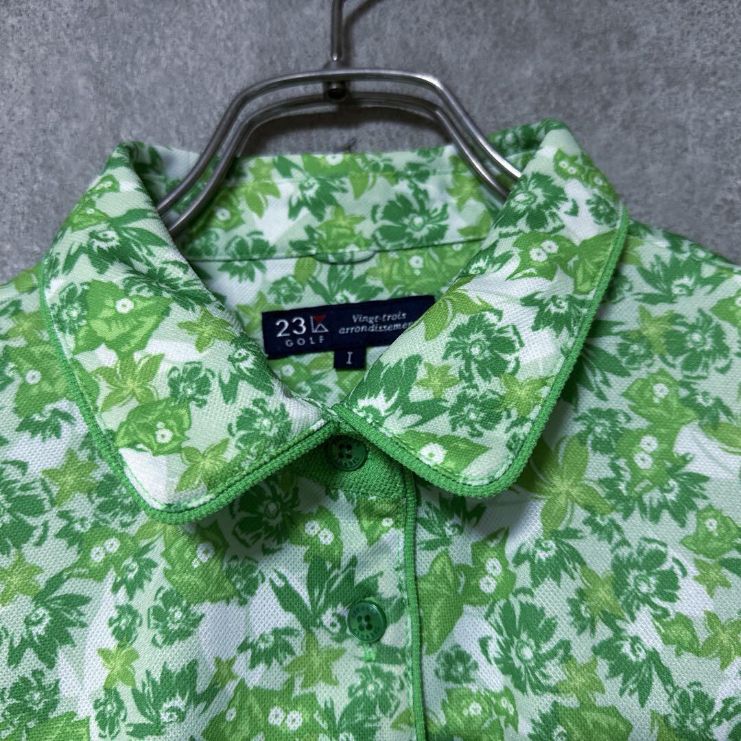 ・ 23区GOLF ニジュウサンクゴルフ 総柄 ポロシャツ ゴルフ ウェア 半袖 レディース