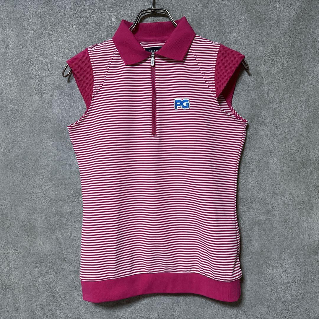 ・ Pearly Gates パーリーゲイツ ハーフジップ ノースリーブ シャツ レディース 人気 デザイン 美品