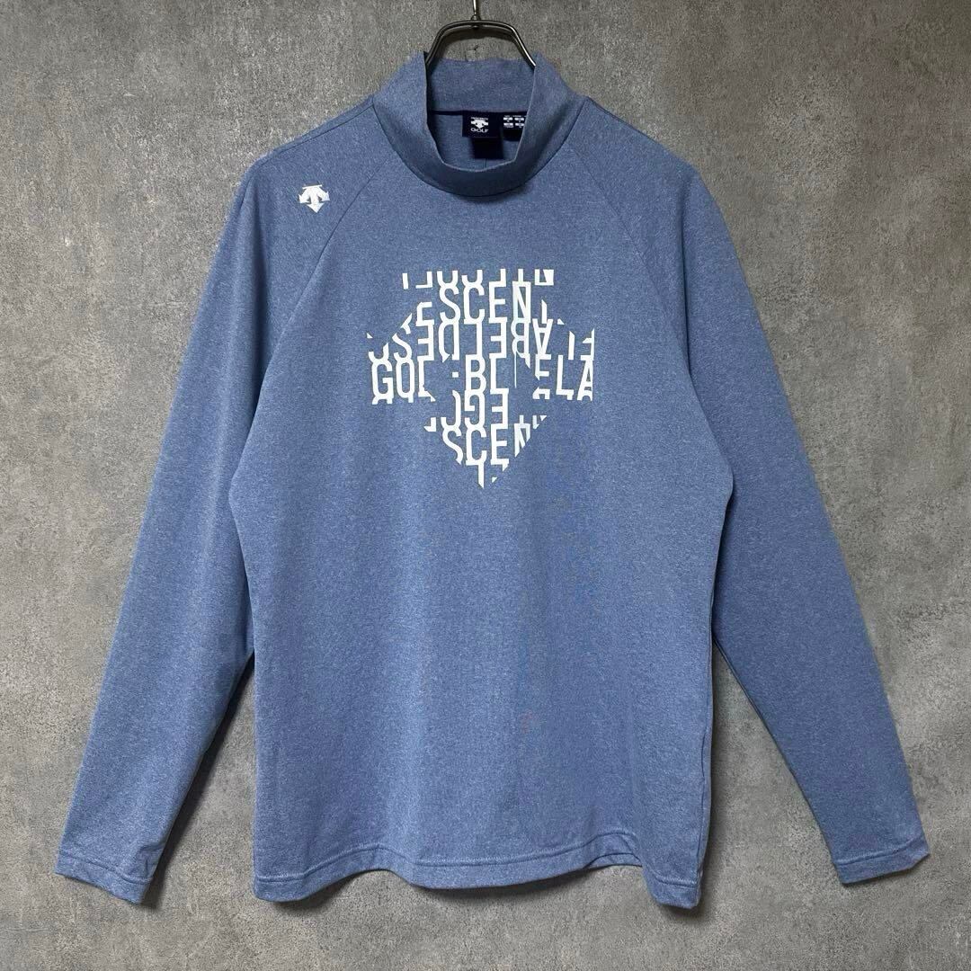 ・ DESCENTE GOLF デサントゴルフ ビッグロゴ モックネック シャツ ブルー M メンズ 長袖