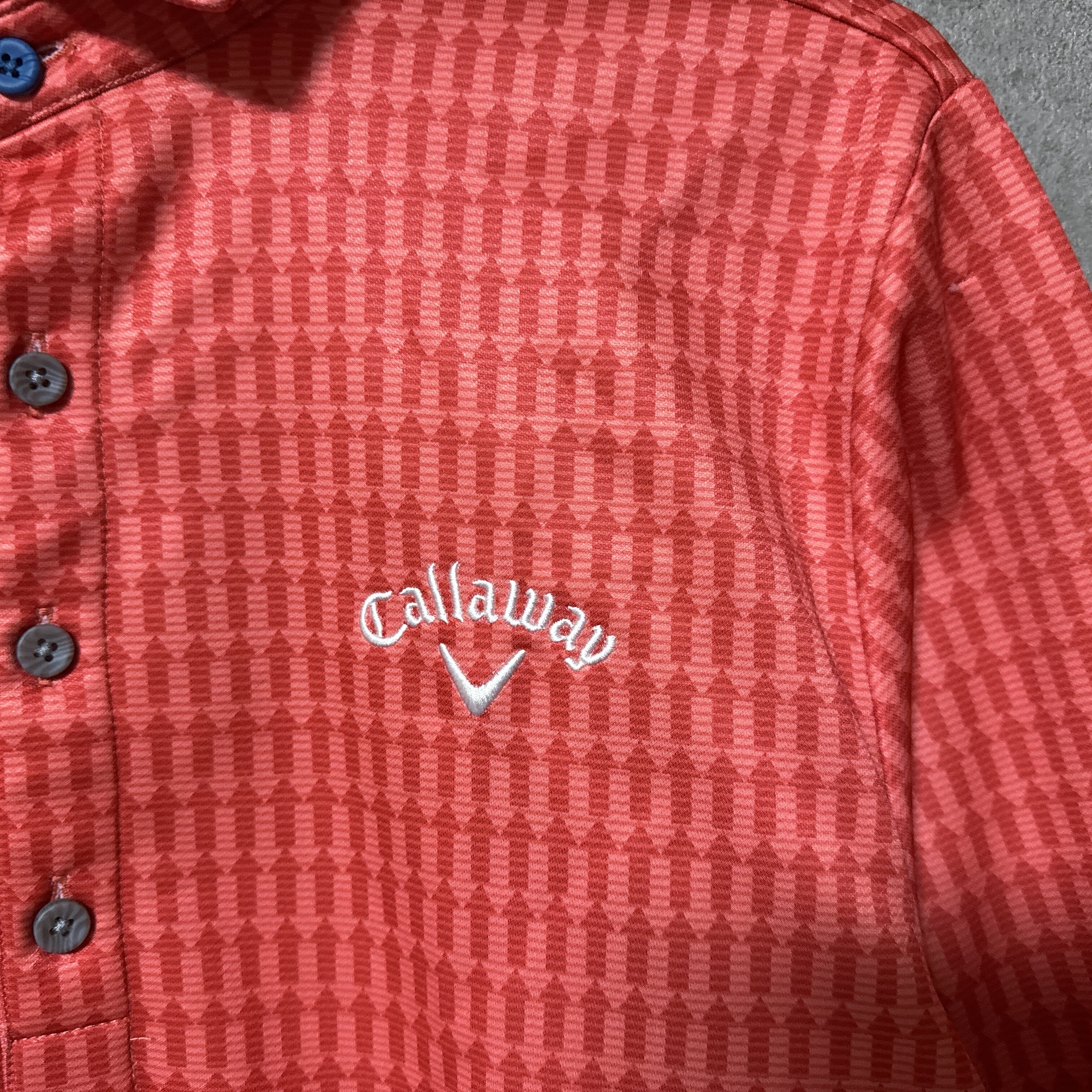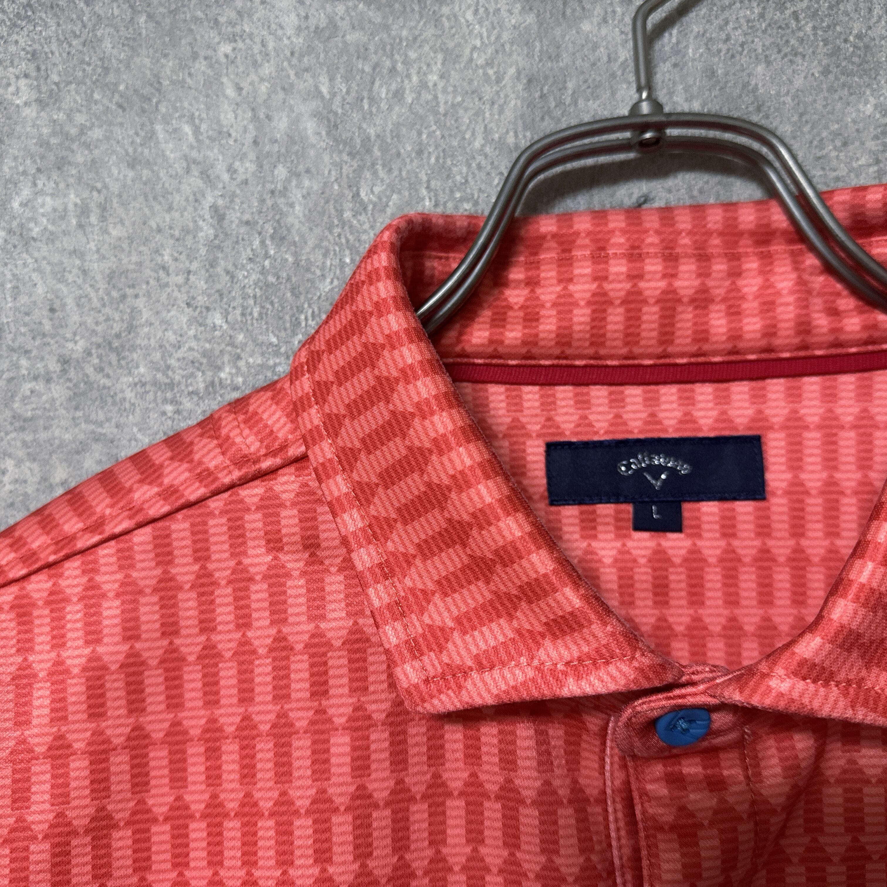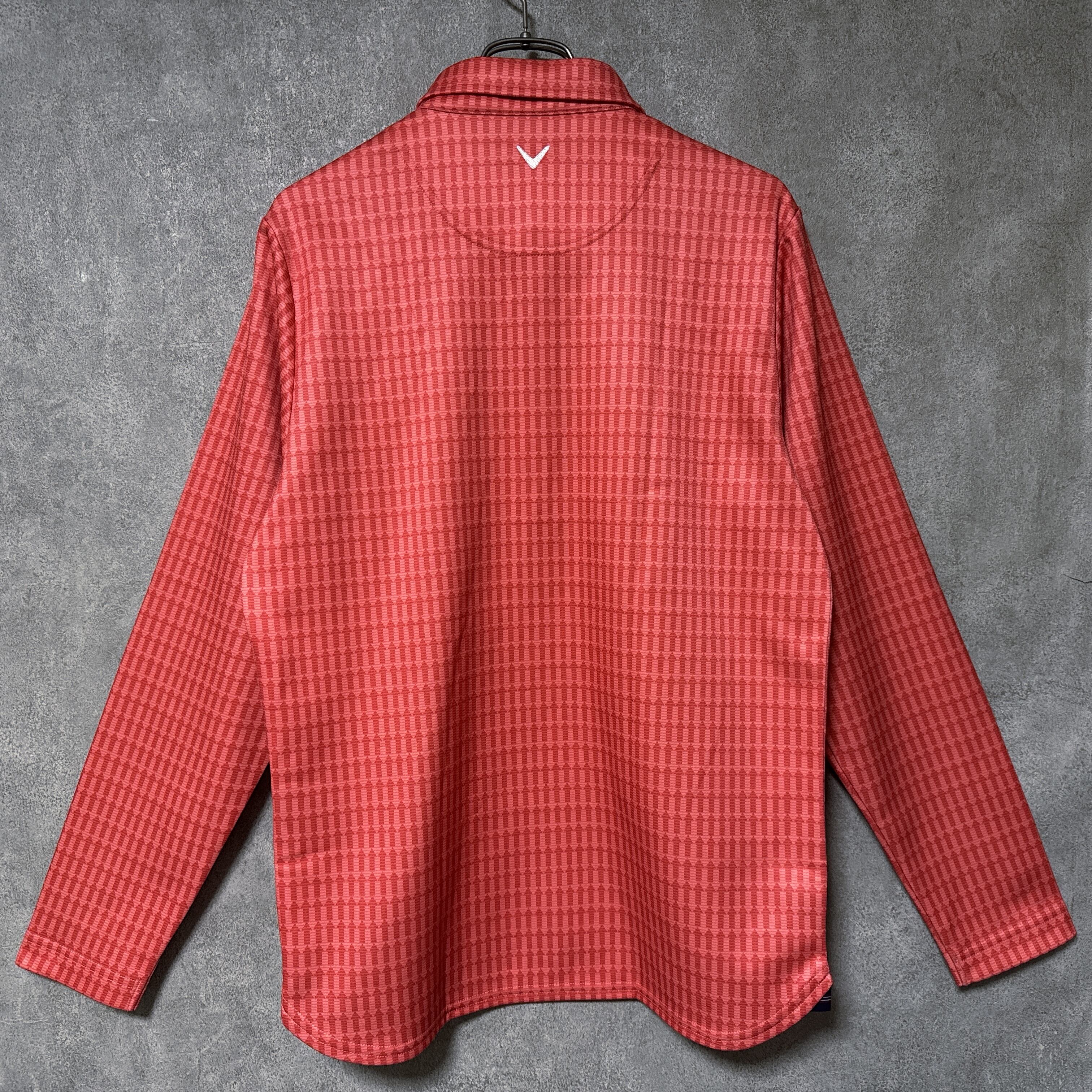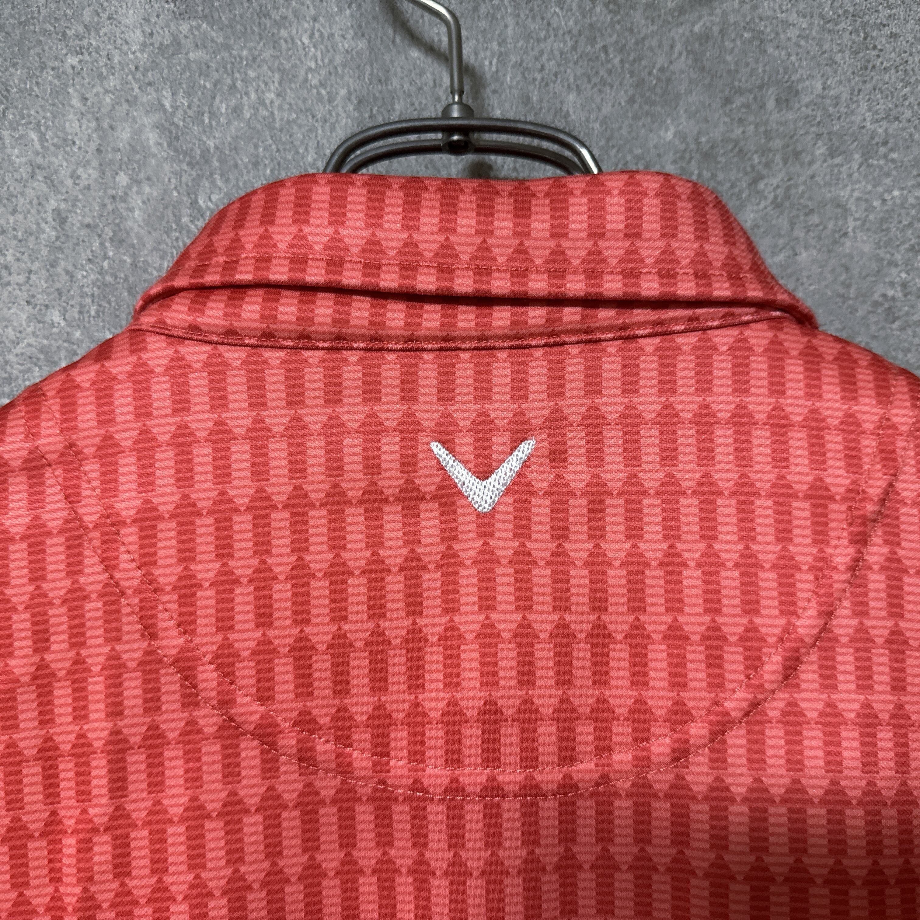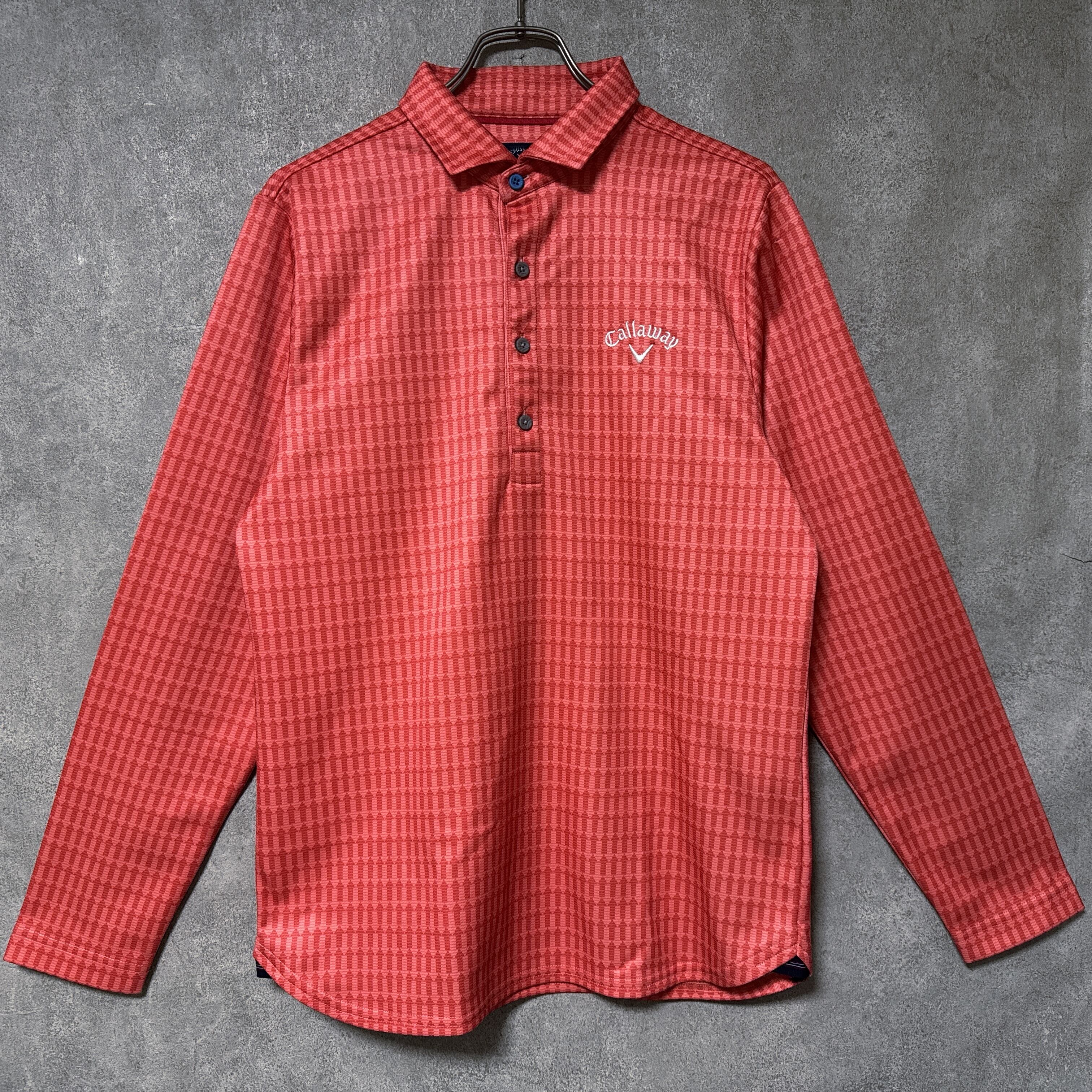 ・ Callaway キャロウェイ 長袖 ポロシャツ 総柄 矢印 レッドオレンジ L メンズ ウェア