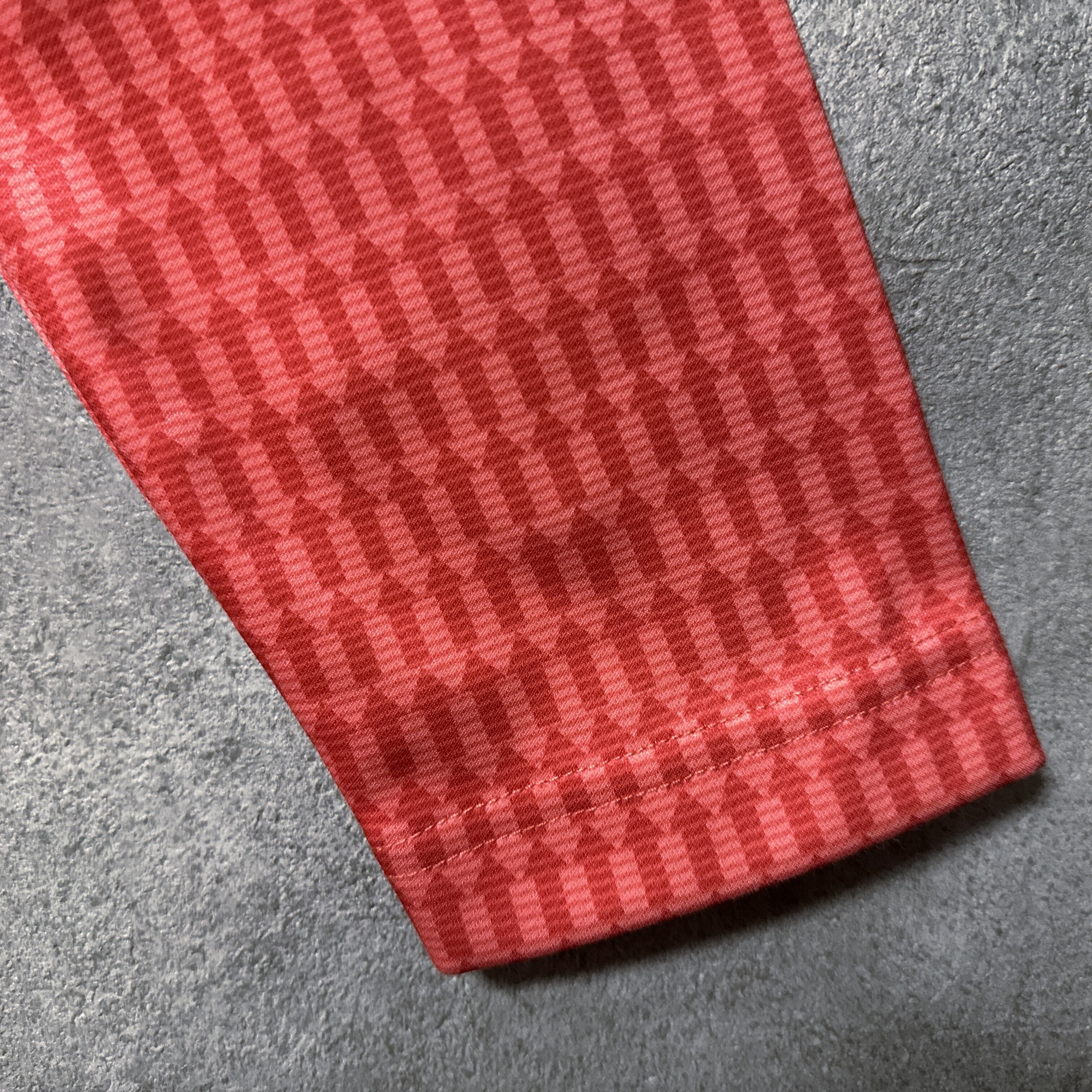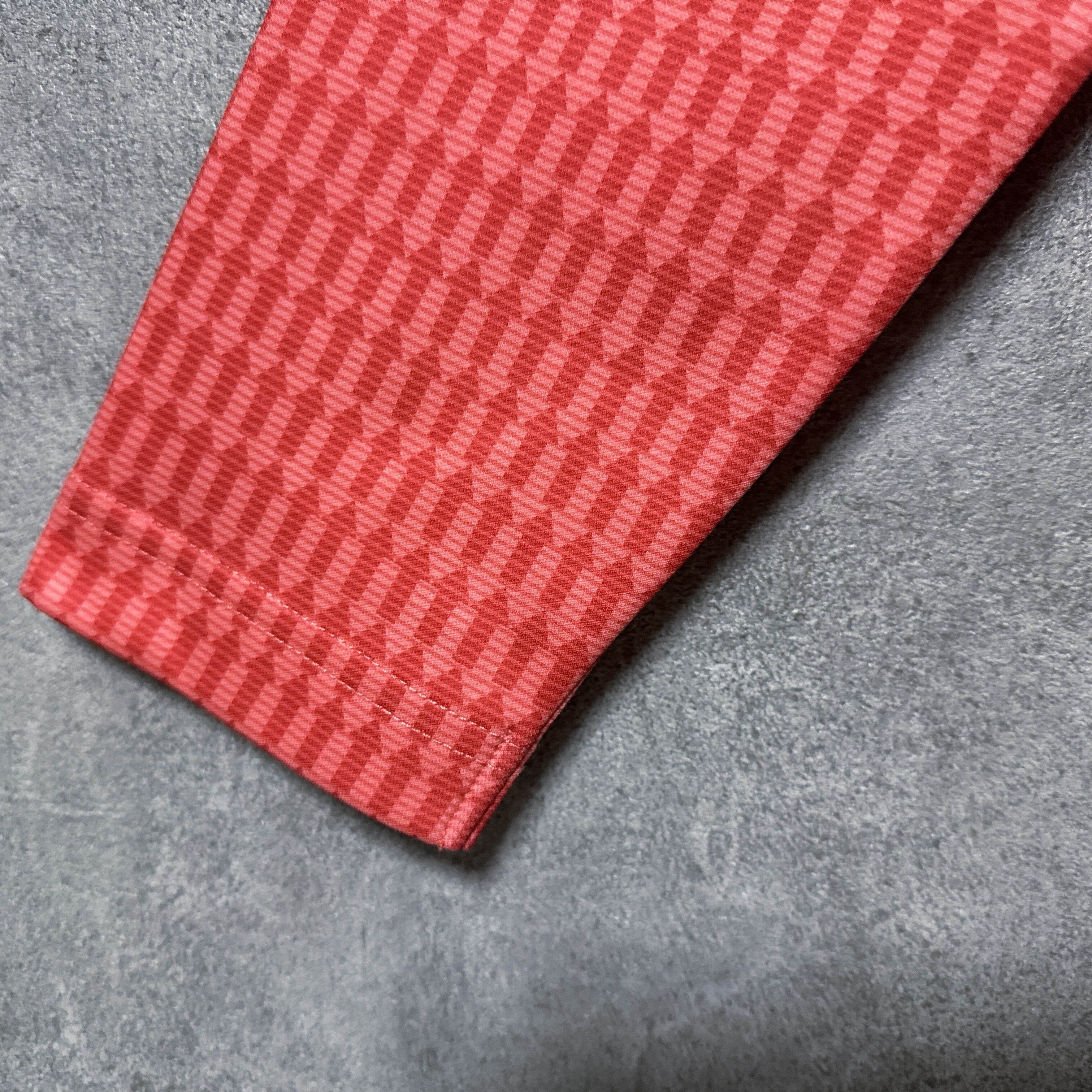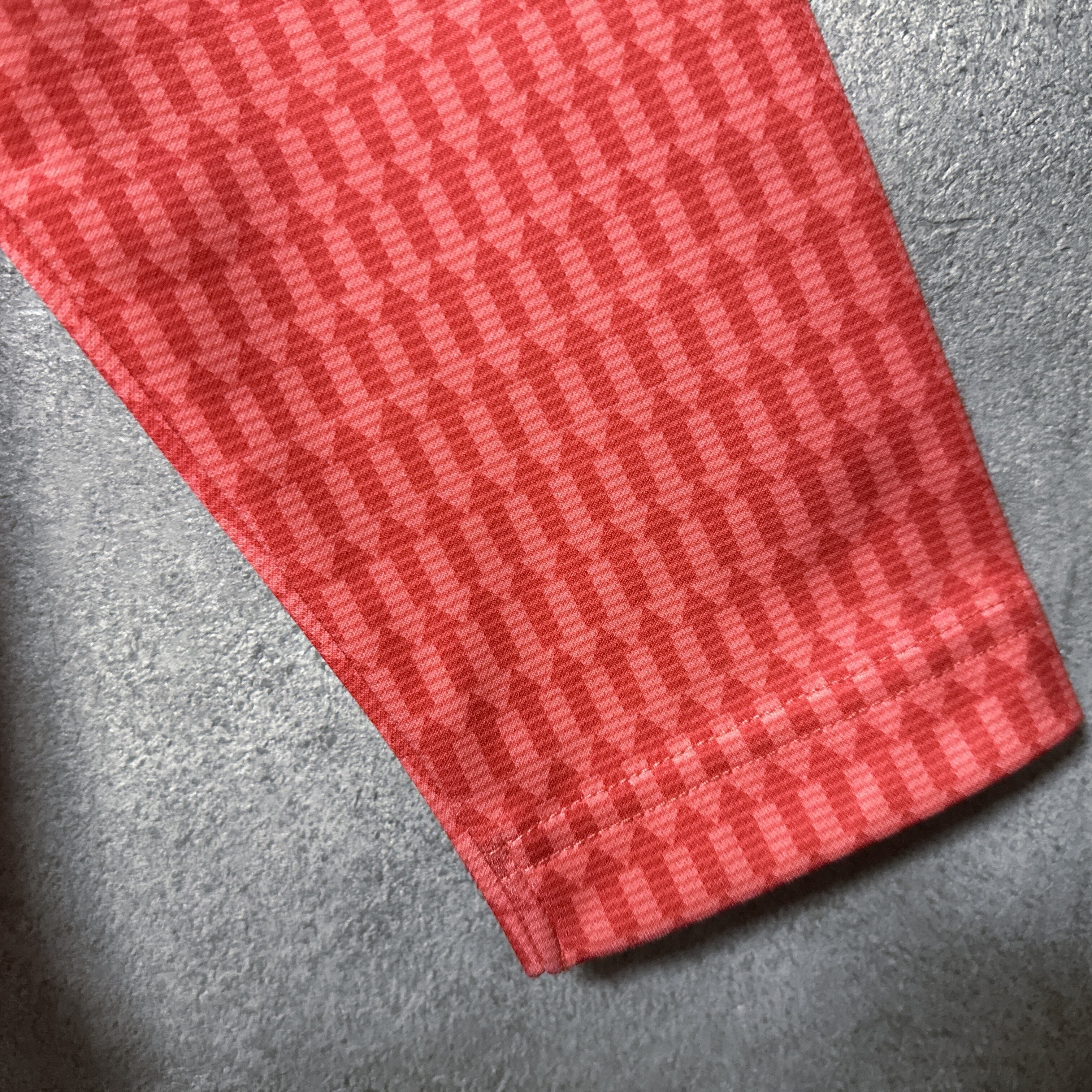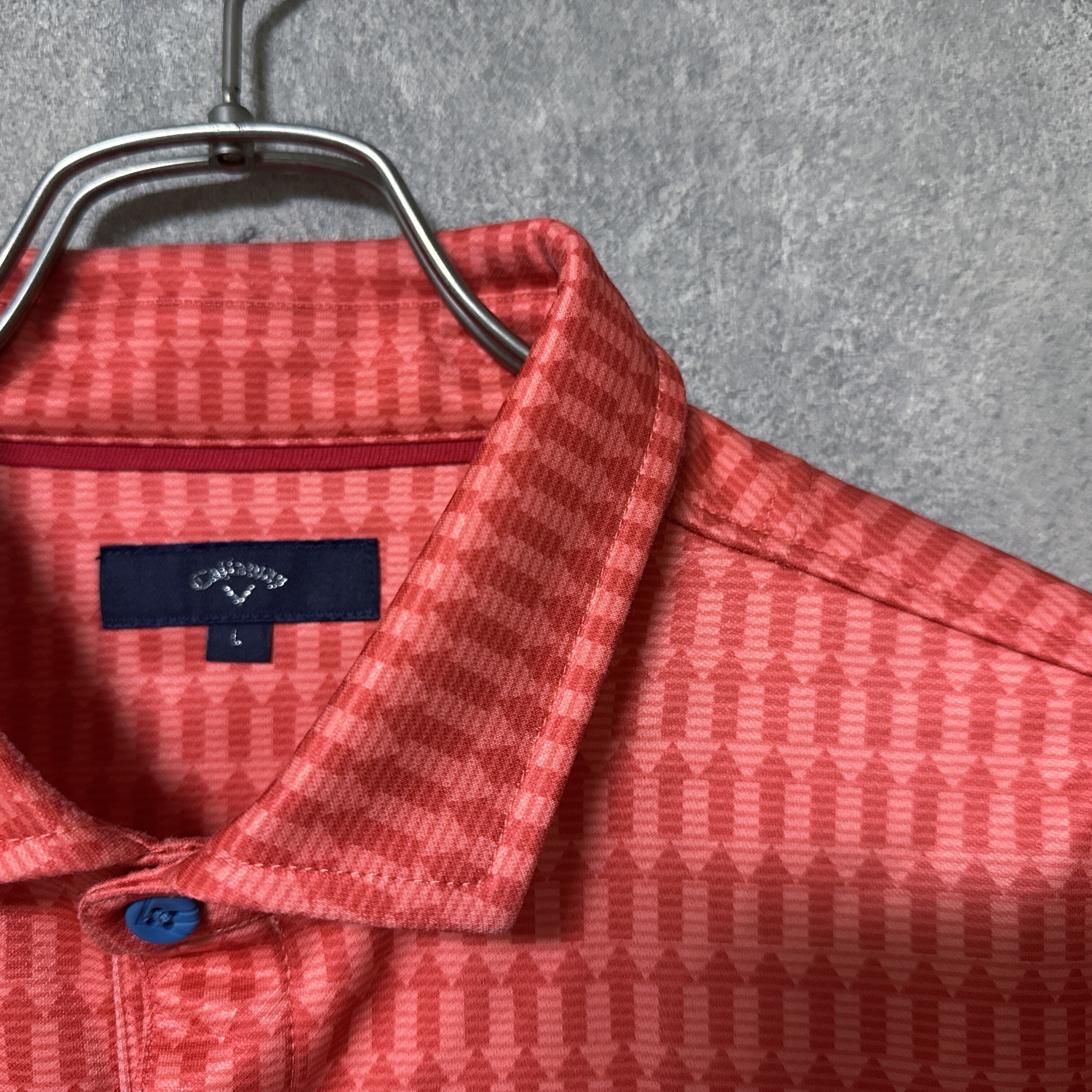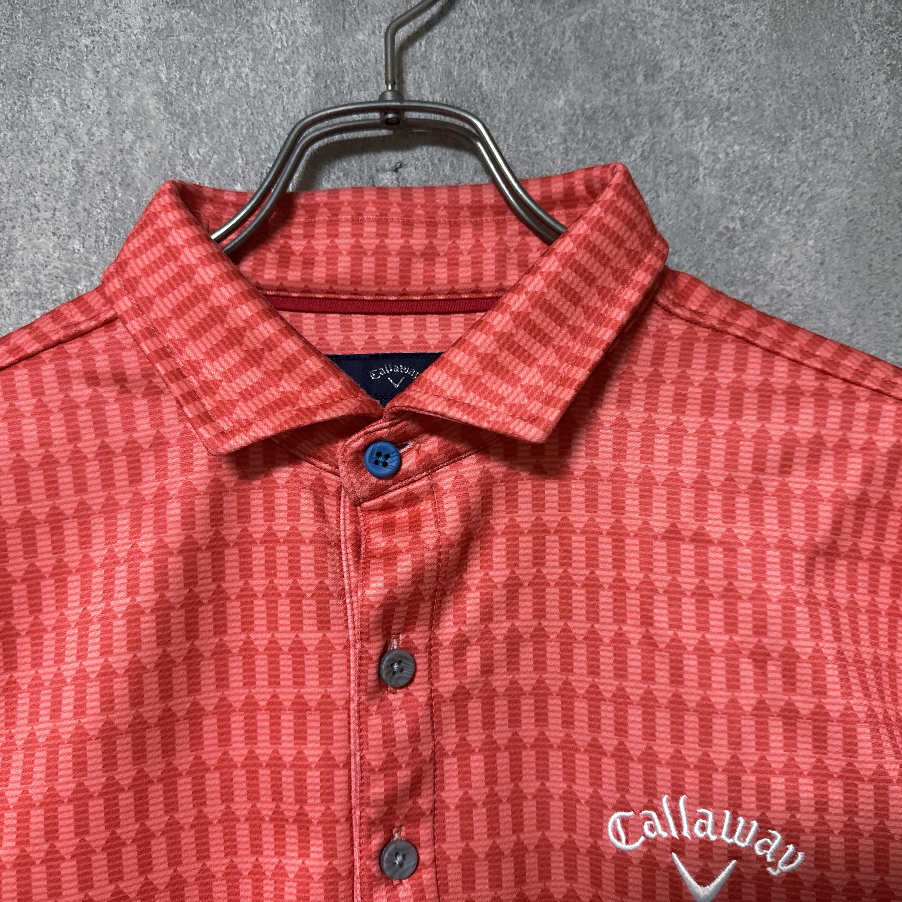 ・ Callaway キャロウェイ 長袖 ポロシャツ 総柄 矢印 レッドオレンジ L メンズ ウェア