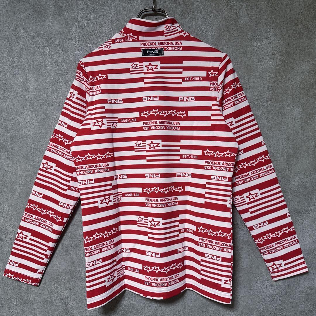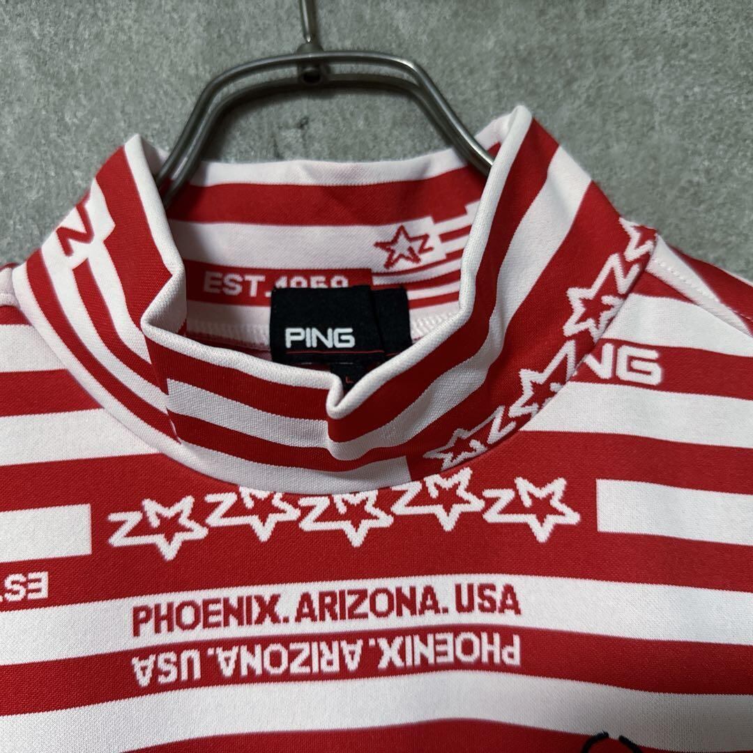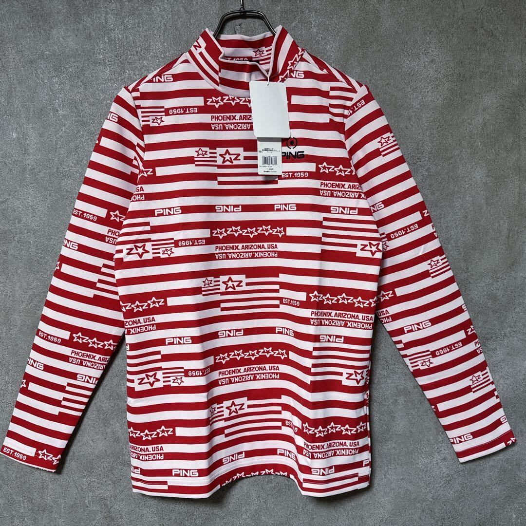 ・ 【未使用】 PING ピン 総柄 長袖 ロゴ モックネック シャツ レッド L ウェア タグ付き レディース ゴルフ
