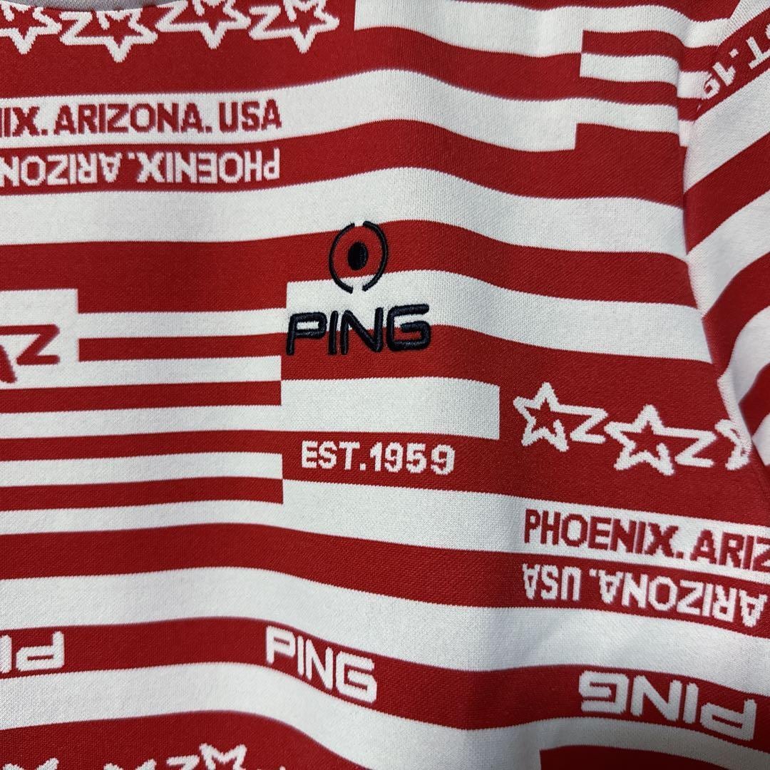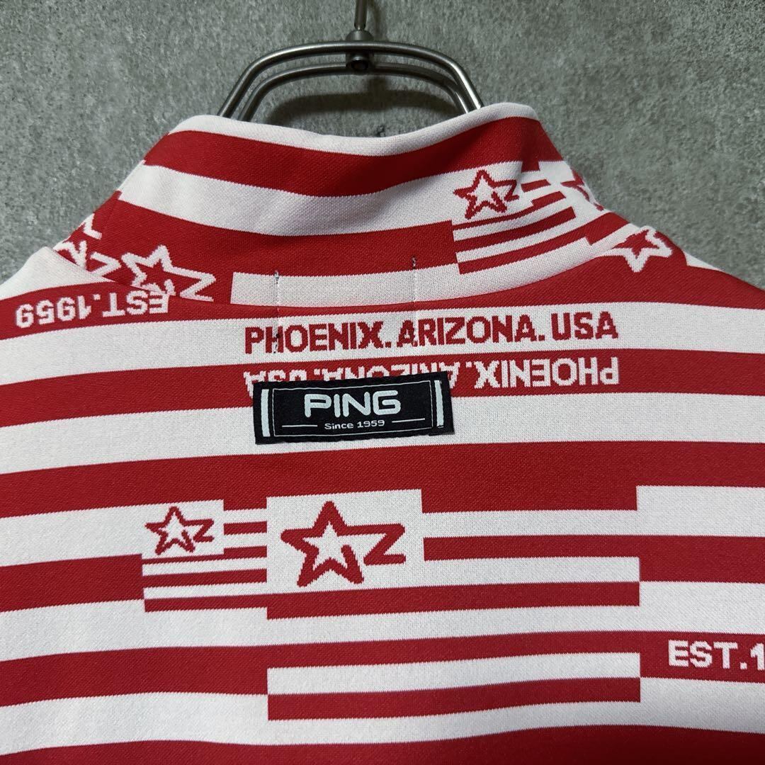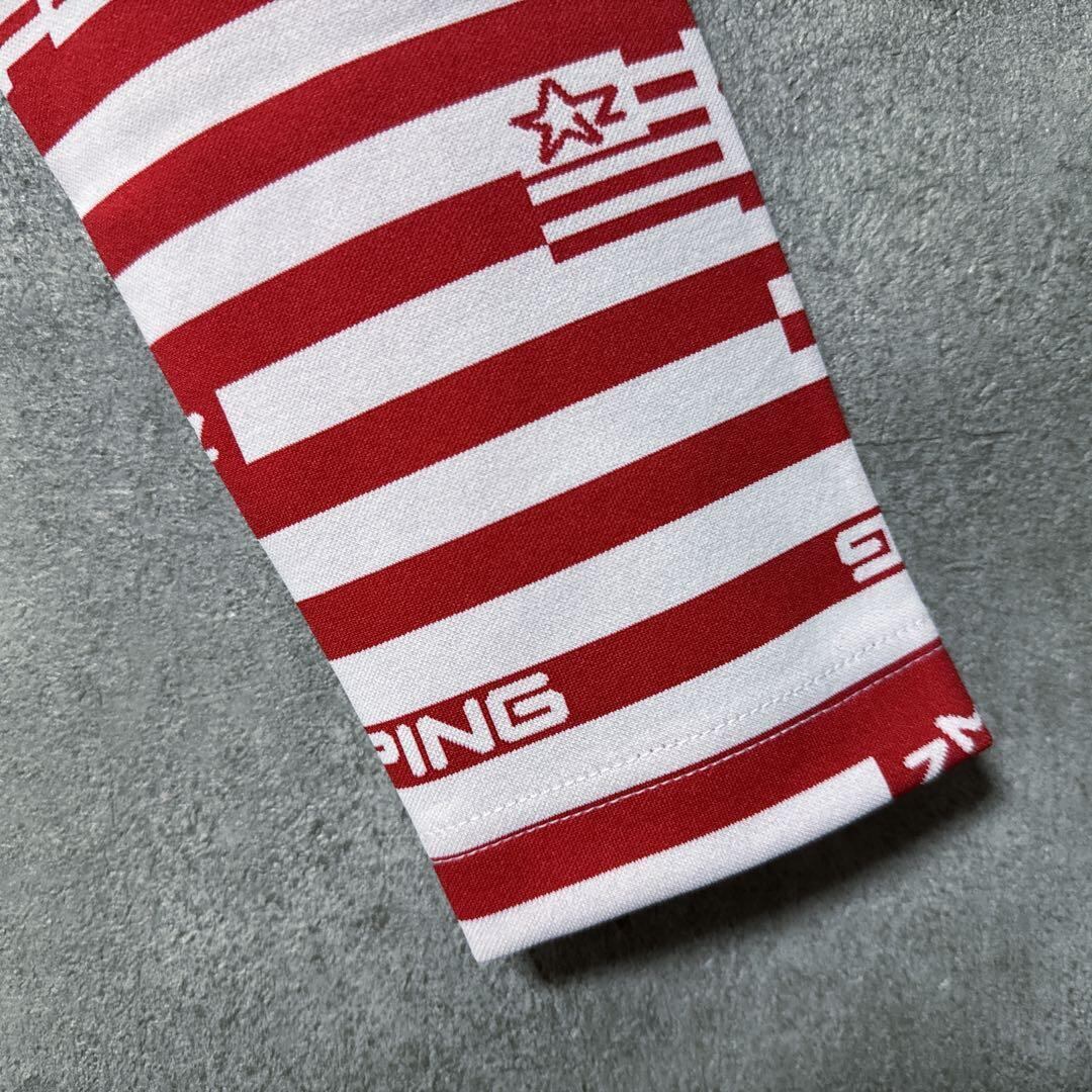 ・ 【未使用】 PING ピン 総柄 長袖 ロゴ モックネック シャツ レッド L ウェア タグ付き レディース ゴルフ