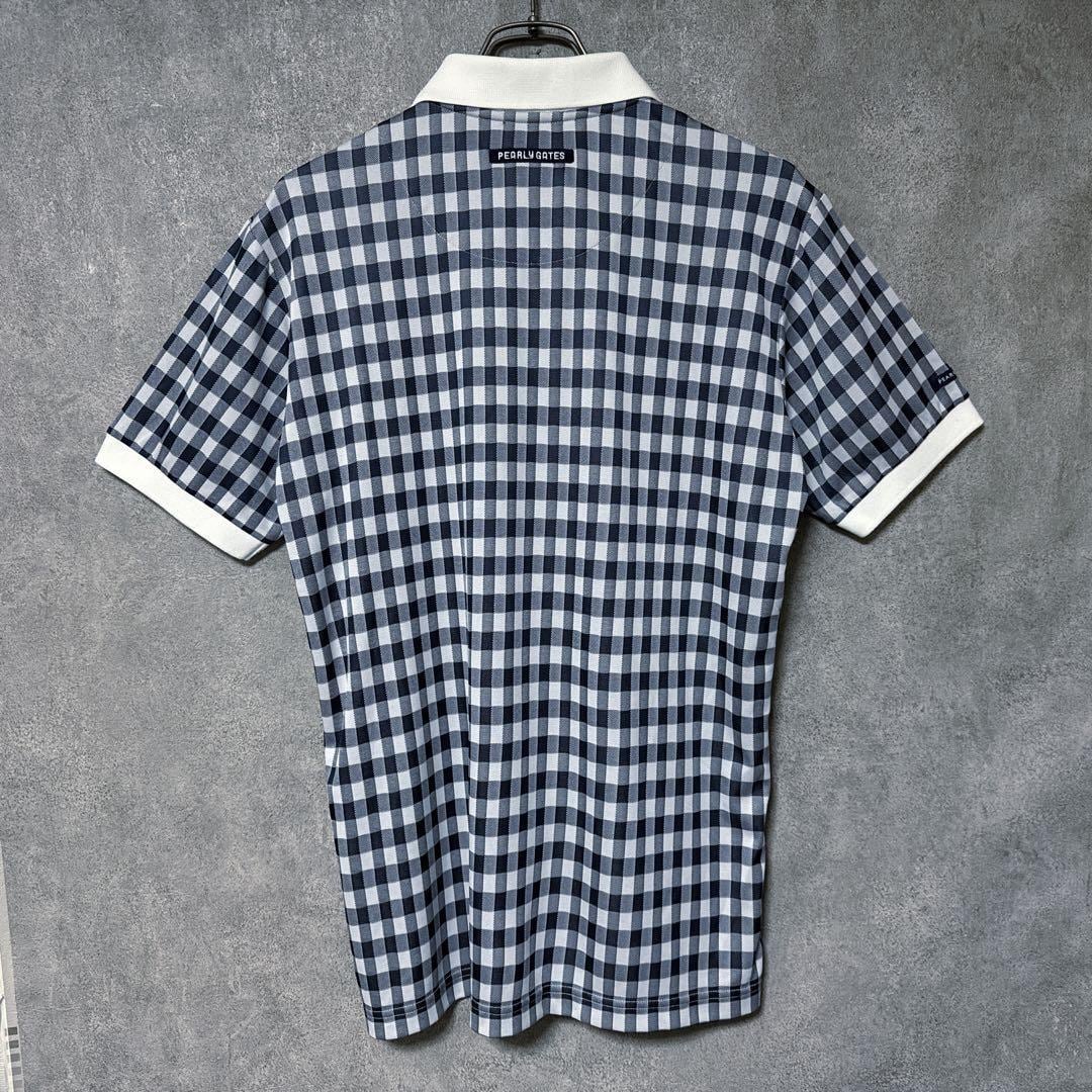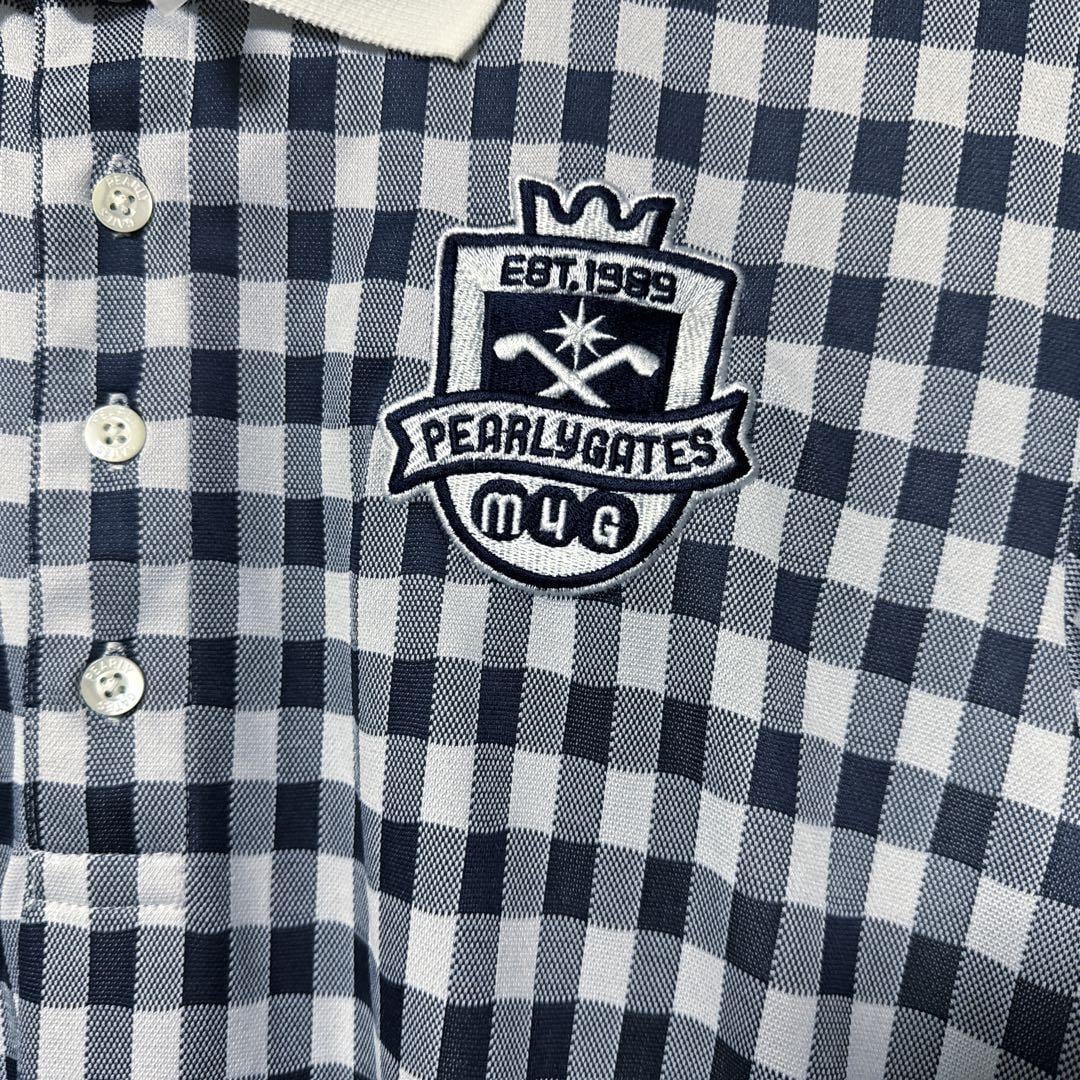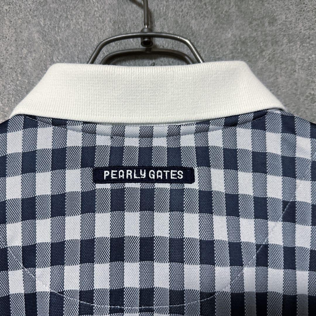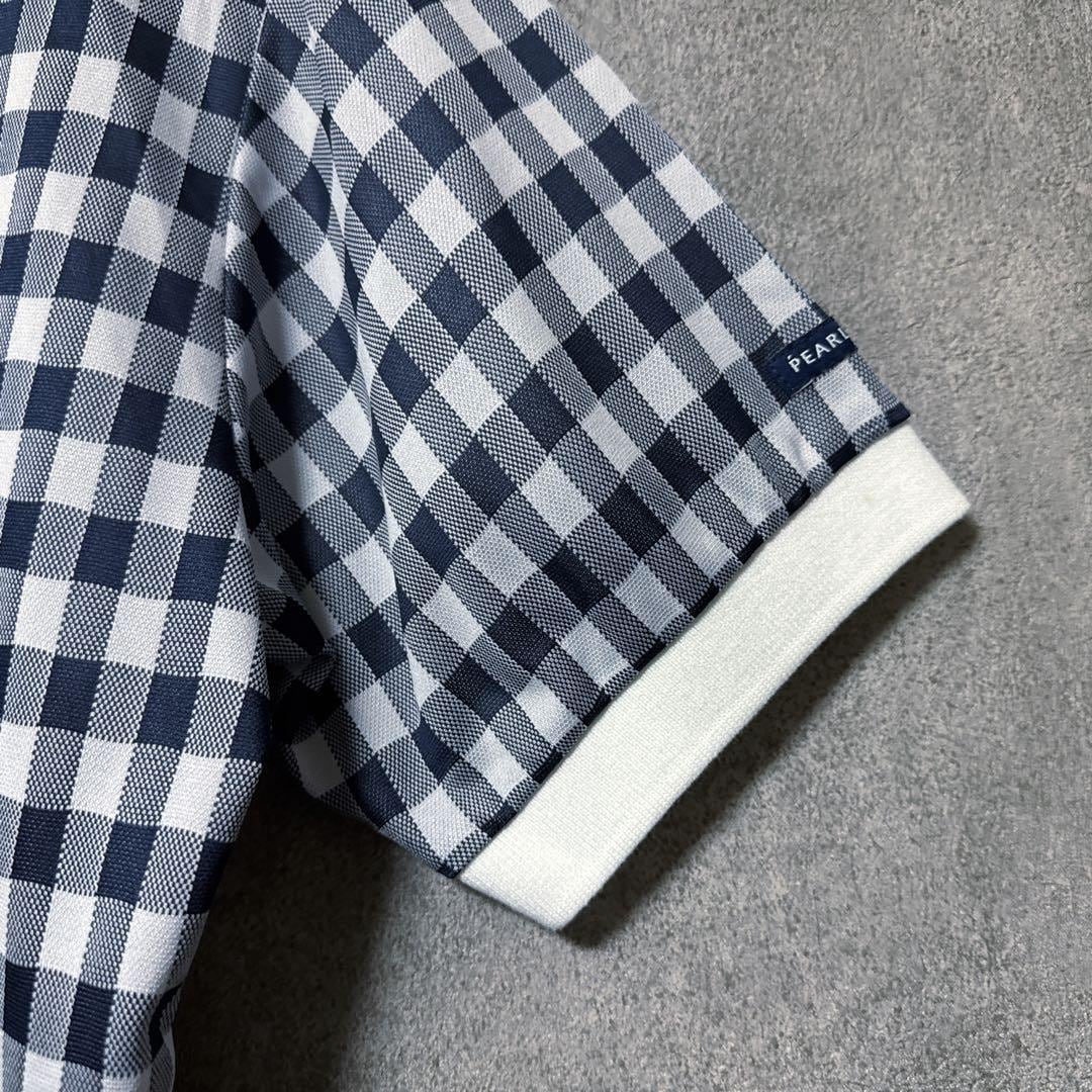 ・ Pearly Gates パーリーゲイツ チェック 総柄 ポロシャツ ネイビー 半袖 メンズ ゴルフ ウェア PG