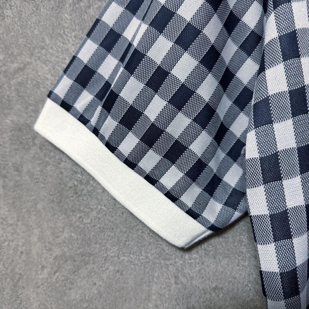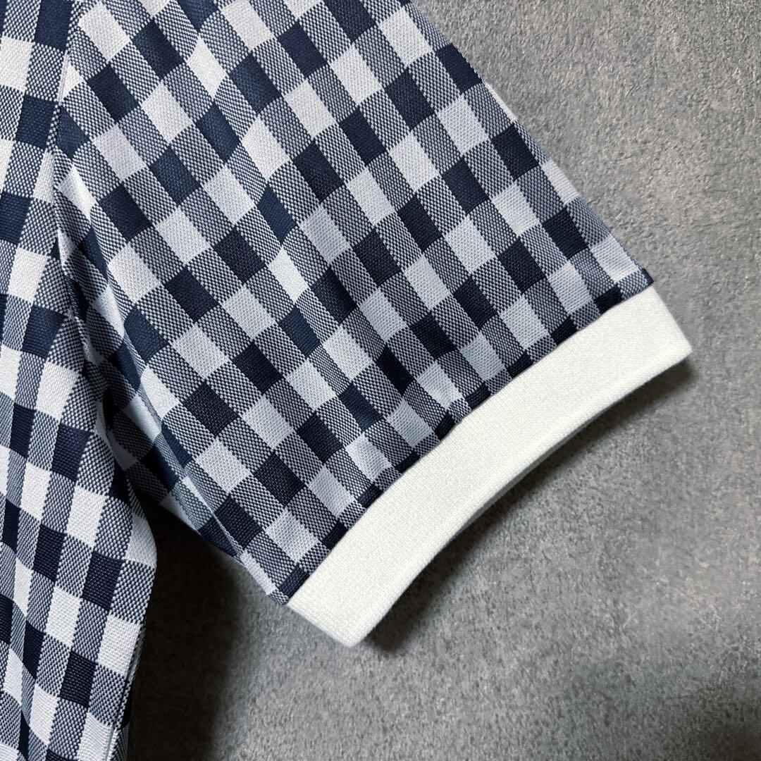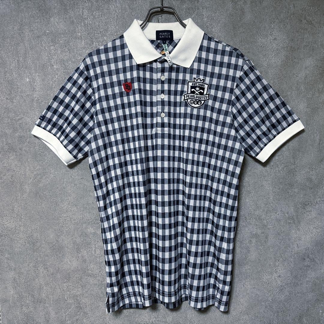 ・ Pearly Gates パーリーゲイツ チェック 総柄 ポロシャツ ネイビー 半袖 メンズ ゴルフ ウェア PG