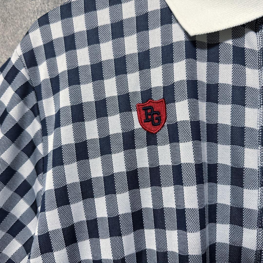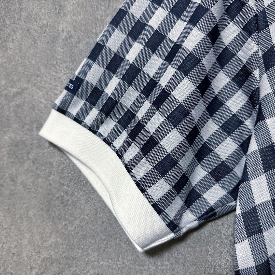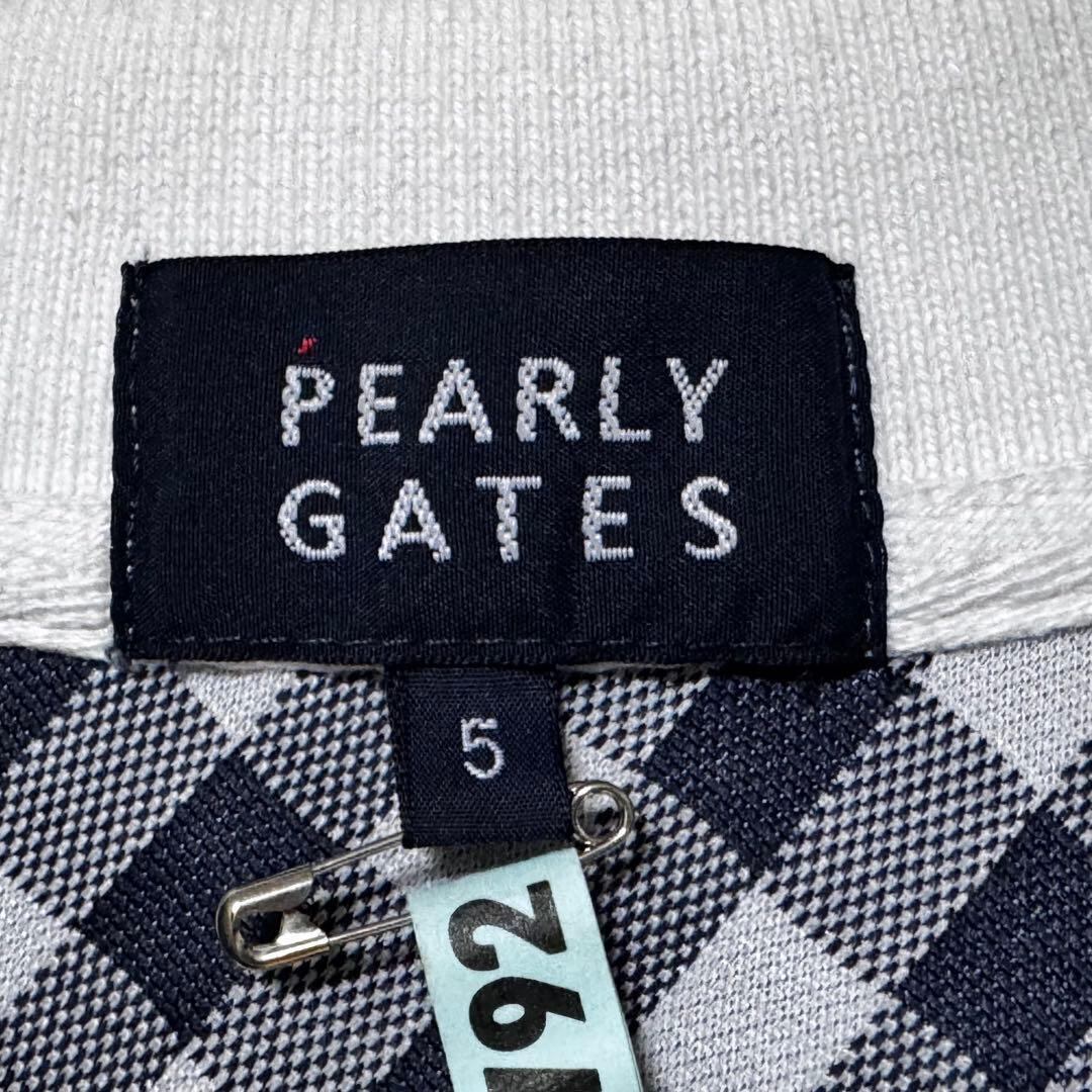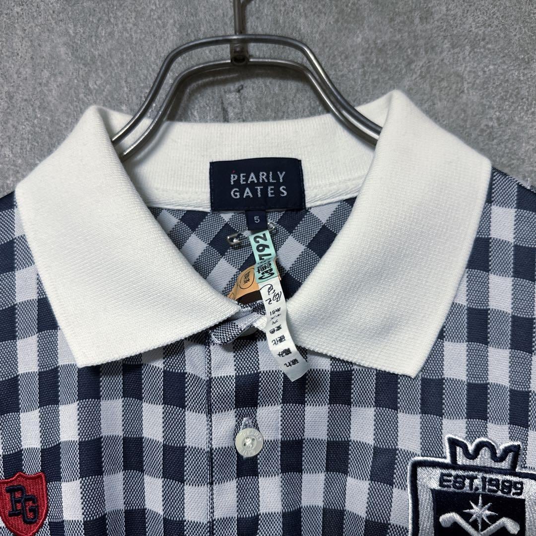 ・ Pearly Gates パーリーゲイツ チェック 総柄 ポロシャツ ネイビー 半袖 メンズ ゴルフ ウェア PG