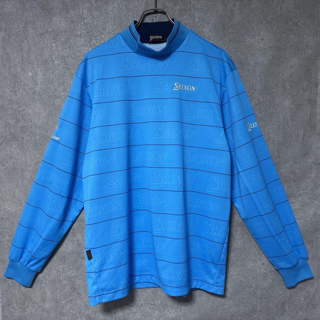 ・ SRIXON スリクソン 総柄 モックネック シャツ 長袖 ロゴ ブルー L メンズ