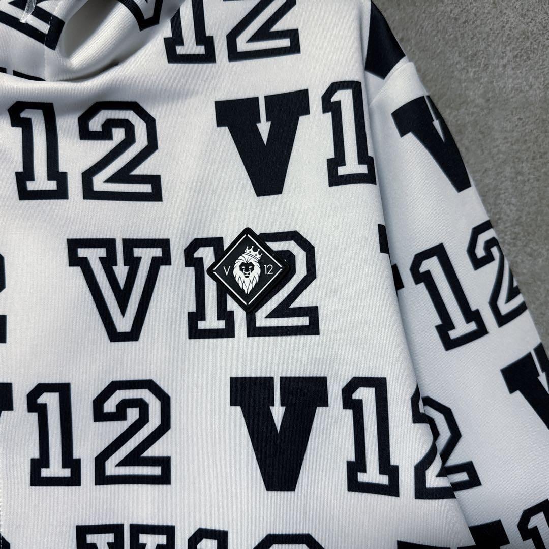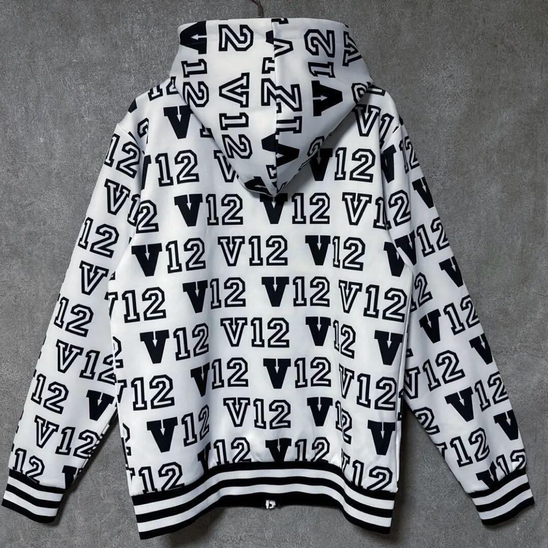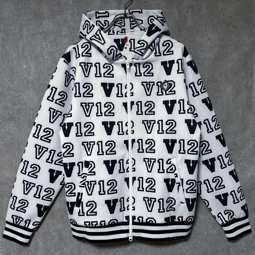 【メンズ】V12 ヴィトゥエルヴ ジップパーカー ジャケット 総柄 ロゴ ホワイト L