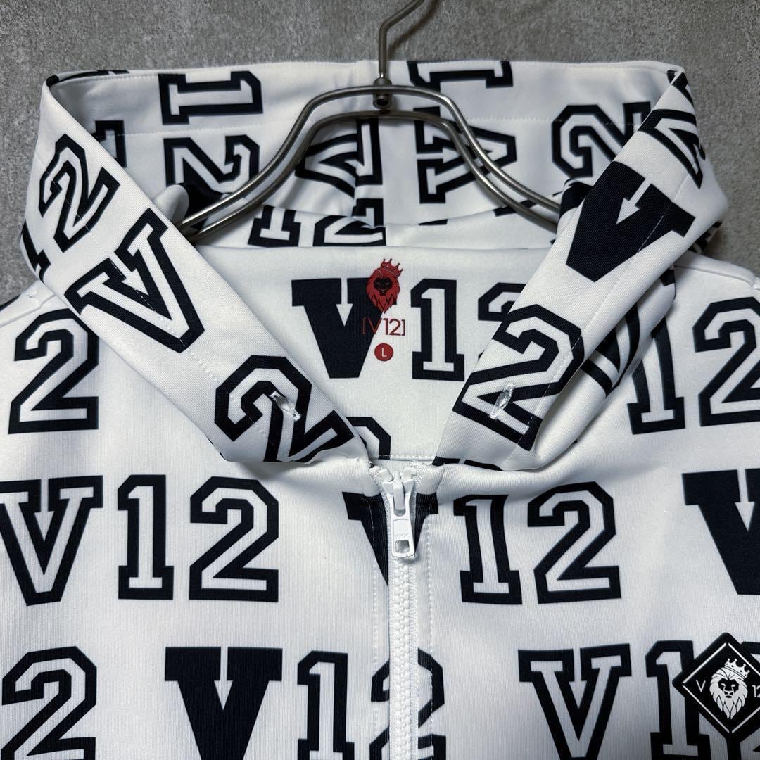 ・ V12 ヴィトゥエルヴ ジップパーカー ジャケット 総柄 ロゴ ホワイト L メンズ ゴルフ ウェア 美品