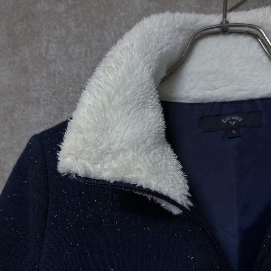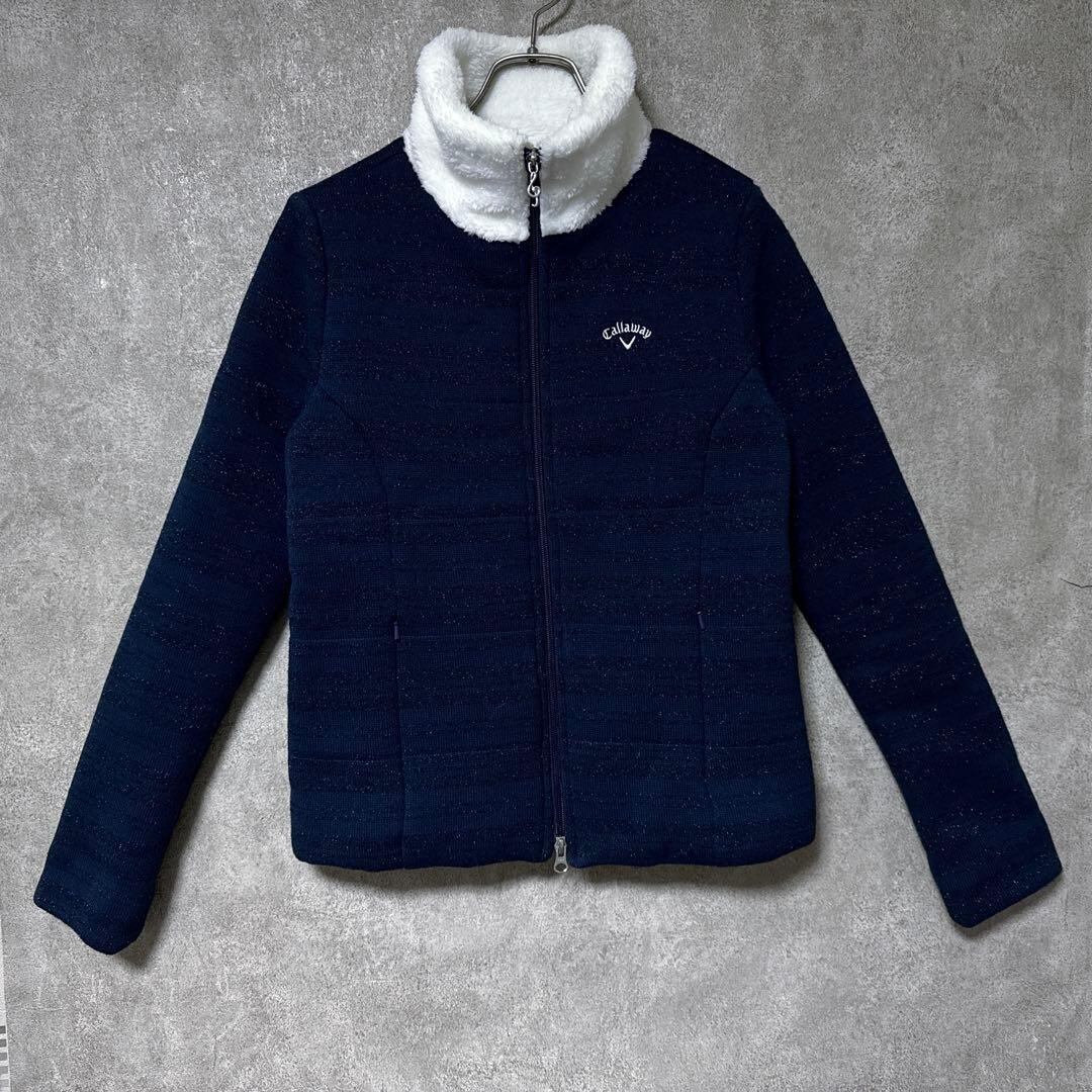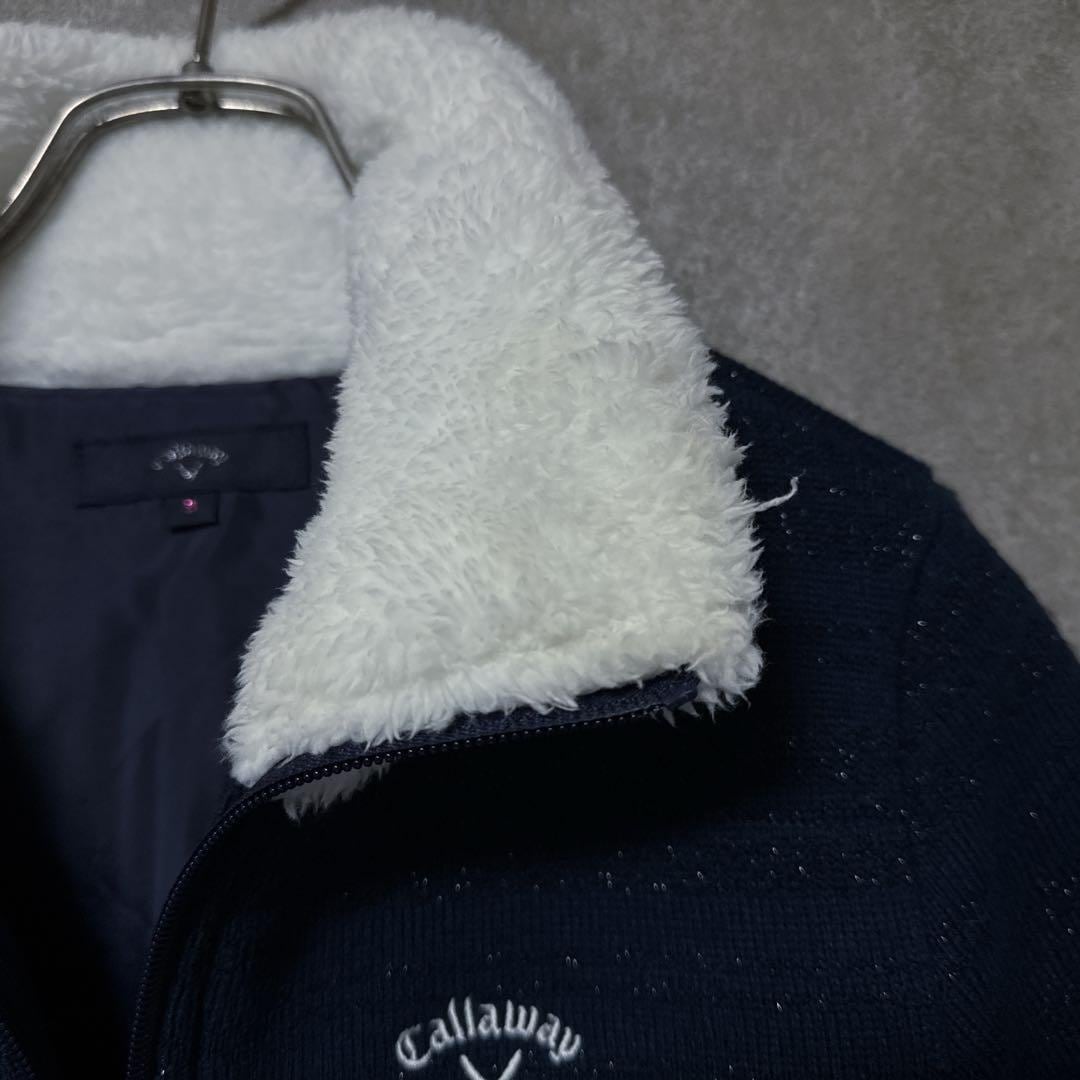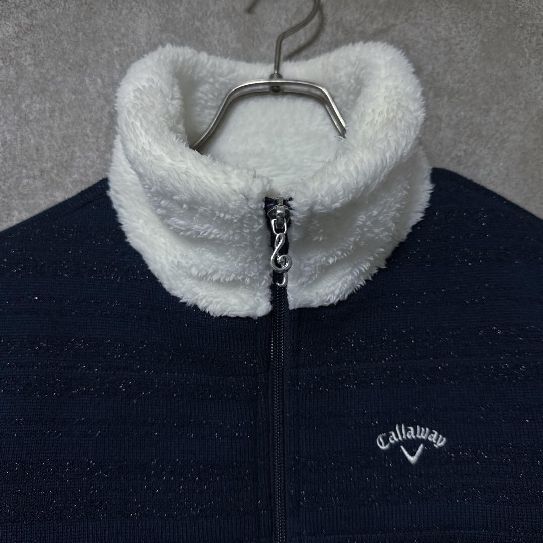 ・ Callaway キャロウェイ 首元ボア 中わた ジップ ジャケット ネイビー レディース ゴルフ ウェア