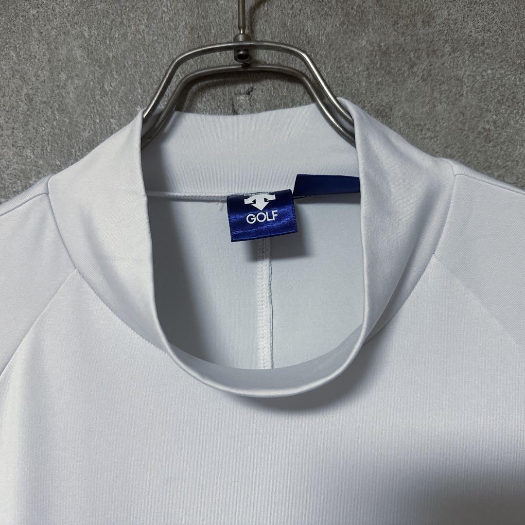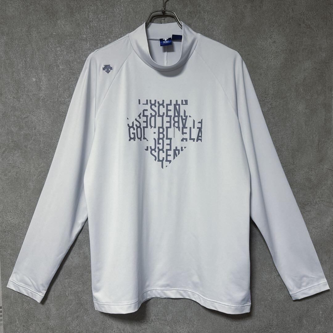 ・ DESCENTE GOLF デサント ビッグロゴ モックネック シャツ ホワイト 大きいサイズ メンズ 長袖 人気 ウェア