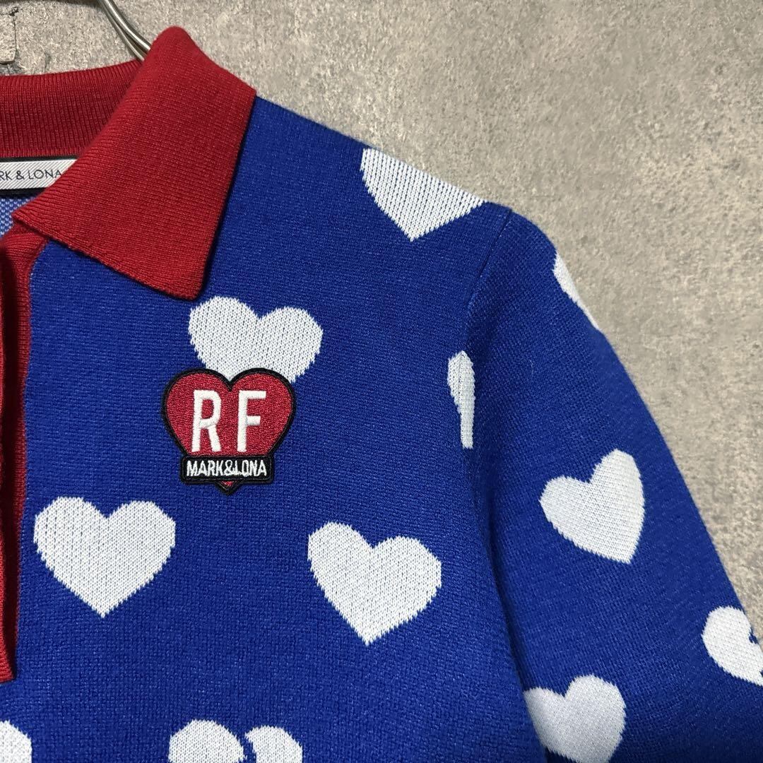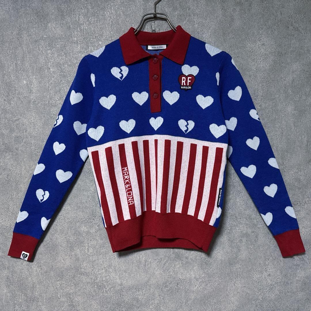 ・ MARK & LONA マークアンドロナ ウール混 ニット ポロシャツ 長袖 レディース ゴルフ ウェア ハート