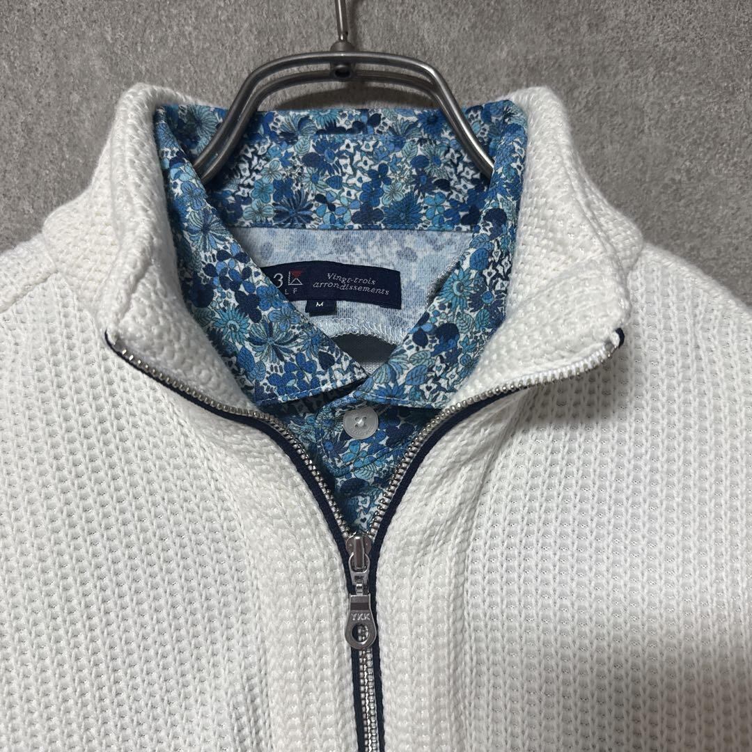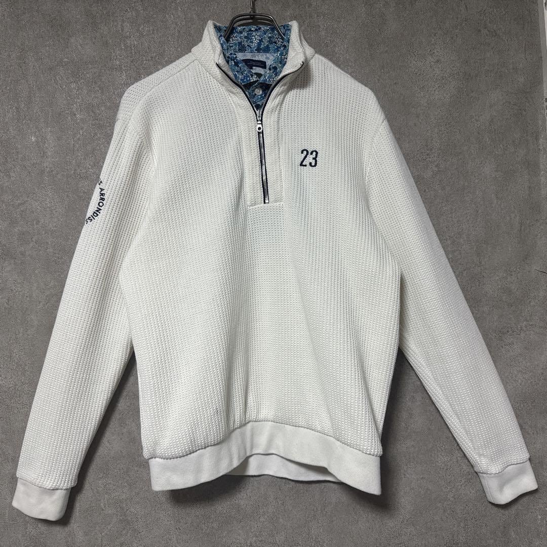 ・ 23区GOLF ニジュウサンクゴルフ 襟付き ハーフジップ ロゴ ニット 長袖 メンズ ゴルフ ウェア 取り外し可能襟