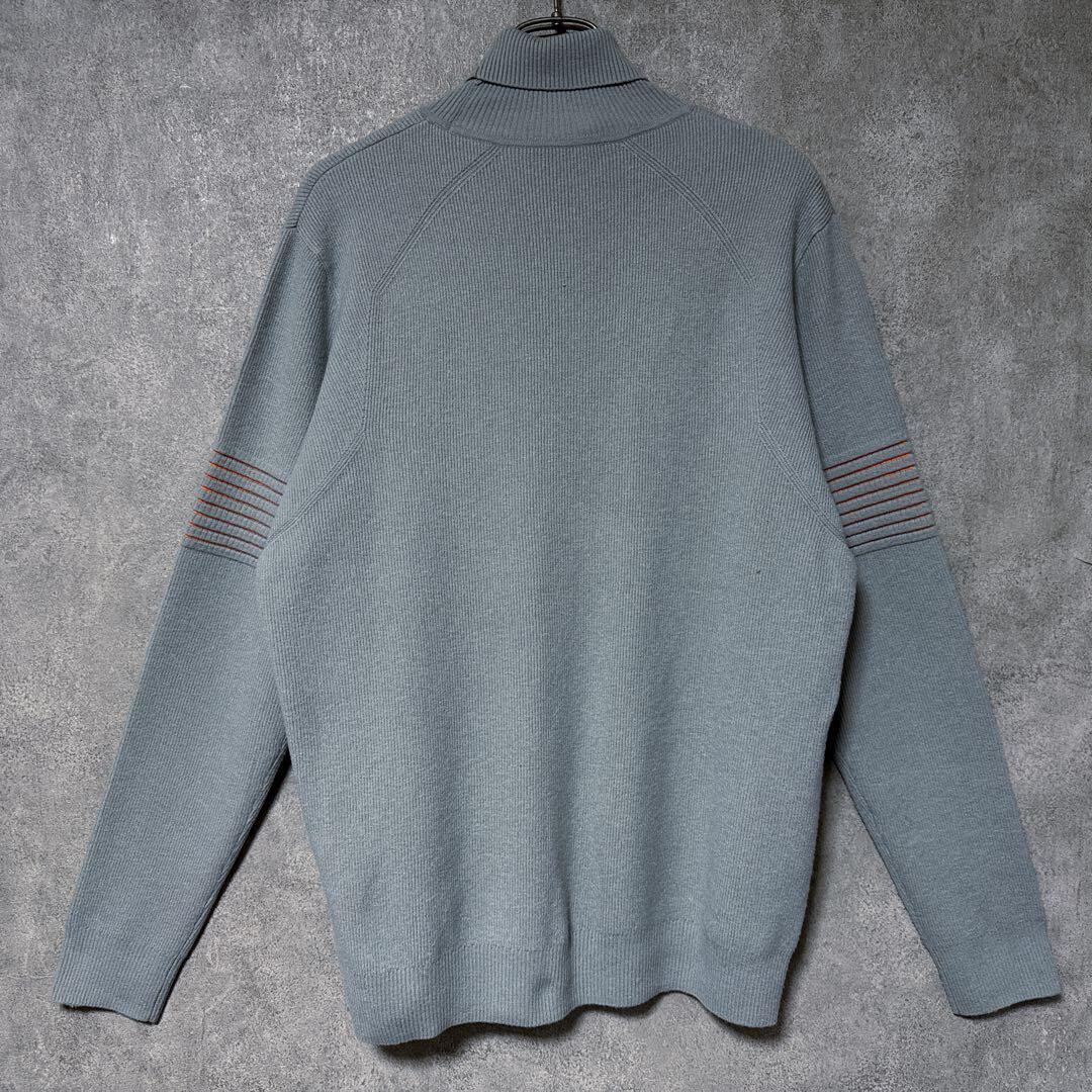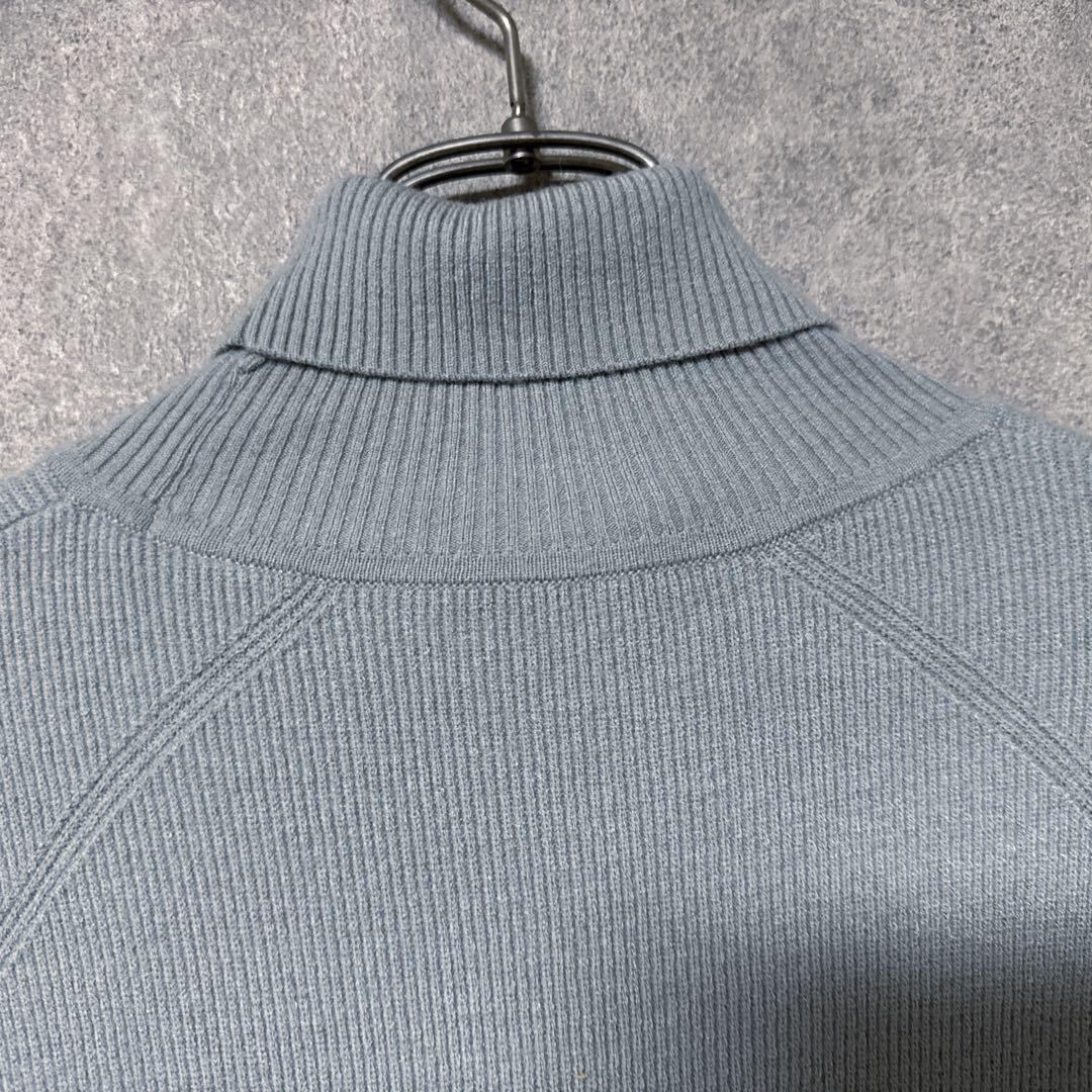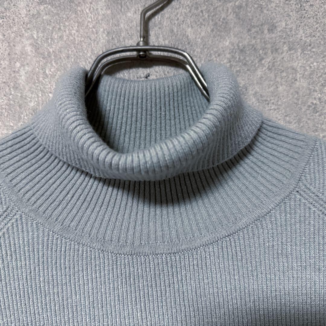 ・落ち着いたグレー系カラーのタートルネックニット。