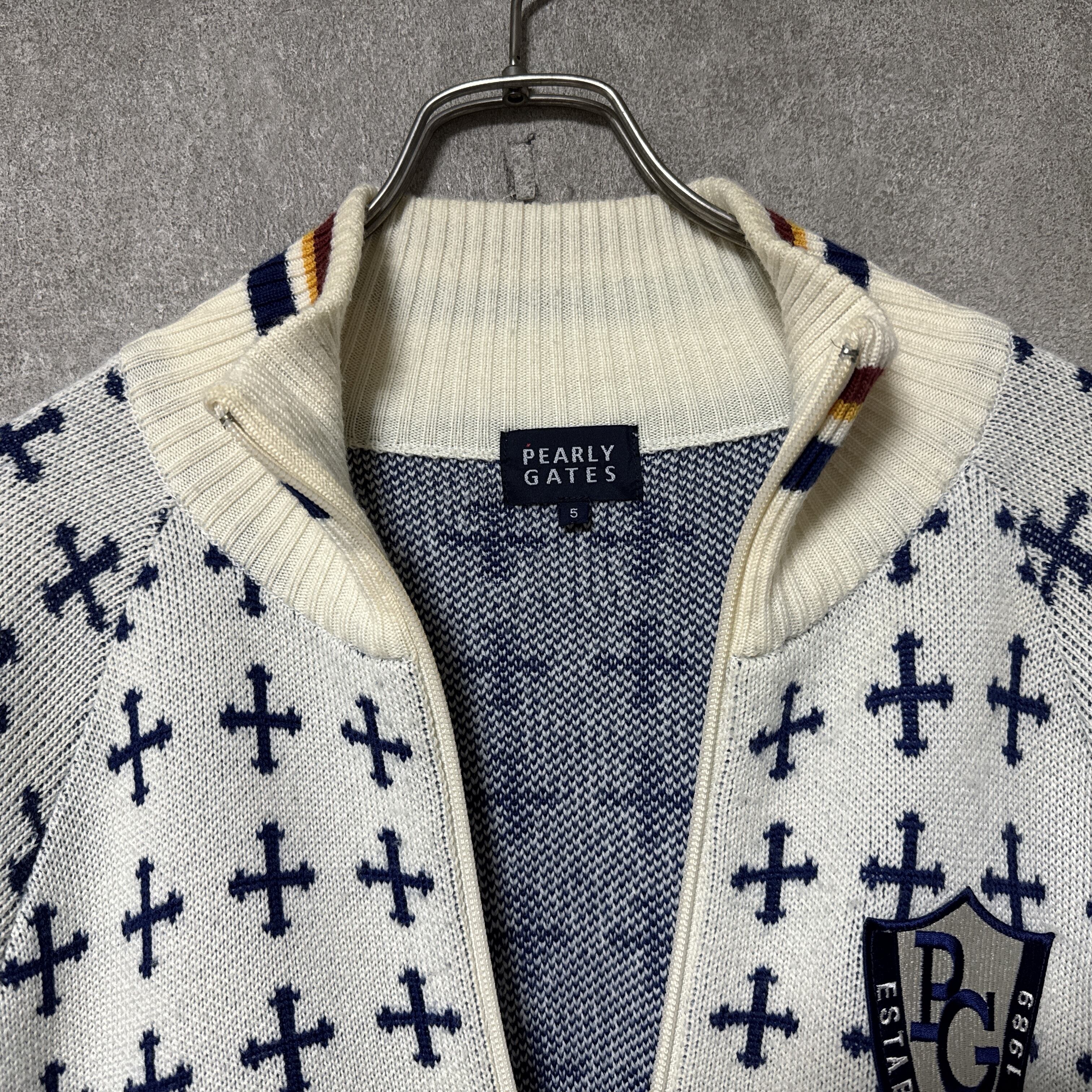 ・ Pearly Gates パーリーゲイツ ニット ジャケット PG ロゴ 5 ウェア ゴルフ ブルゾン 総柄