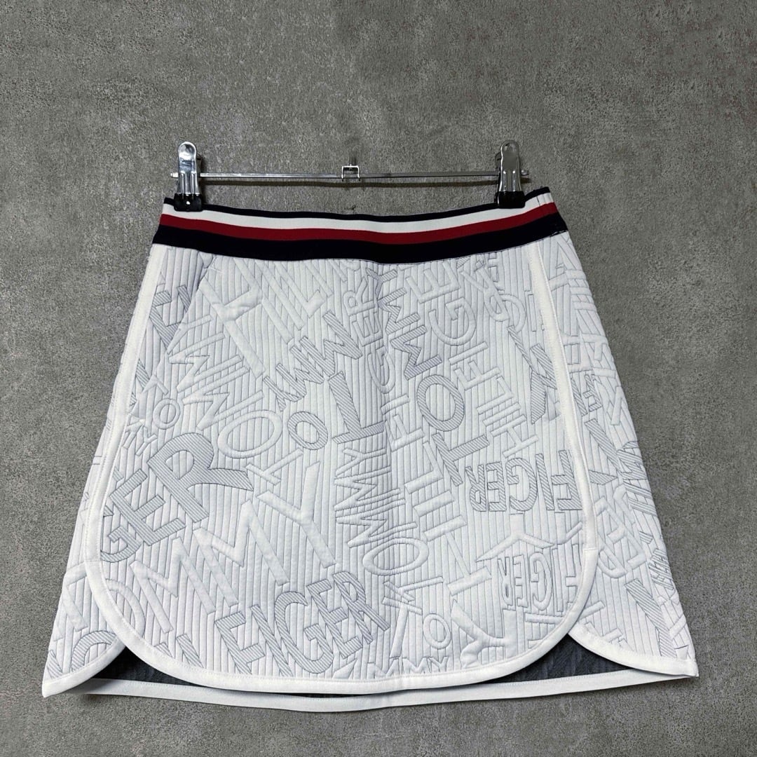 ・ 【新品】Tommy Hilfiger GOLF トミー トミーヒルフィガー トミーヒルフィガーゴルフ ロゴ総柄スカート 白 S レディース スポーツ 運動 人気 未使用 総柄