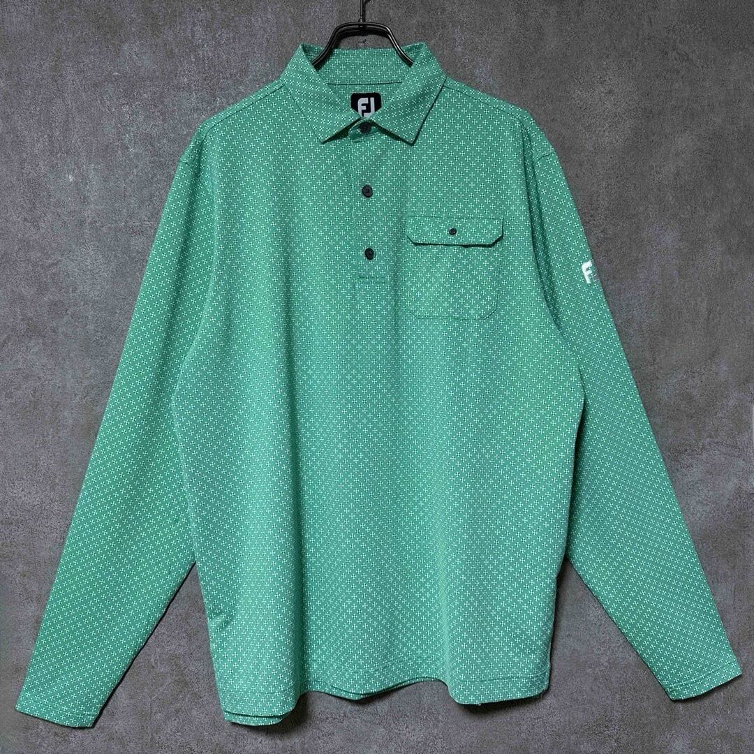 ・FootJoy フットジョイ 総柄 長袖 ポロシャツ ロゴ グリーン 2XL メンズ ゴルフ ウェア スポーツ 男性