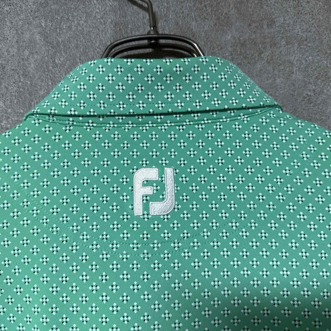 【メンズ】FootJoy フットジョイ 総柄 長袖 ポロシャツ ロゴ グリーン 2XL