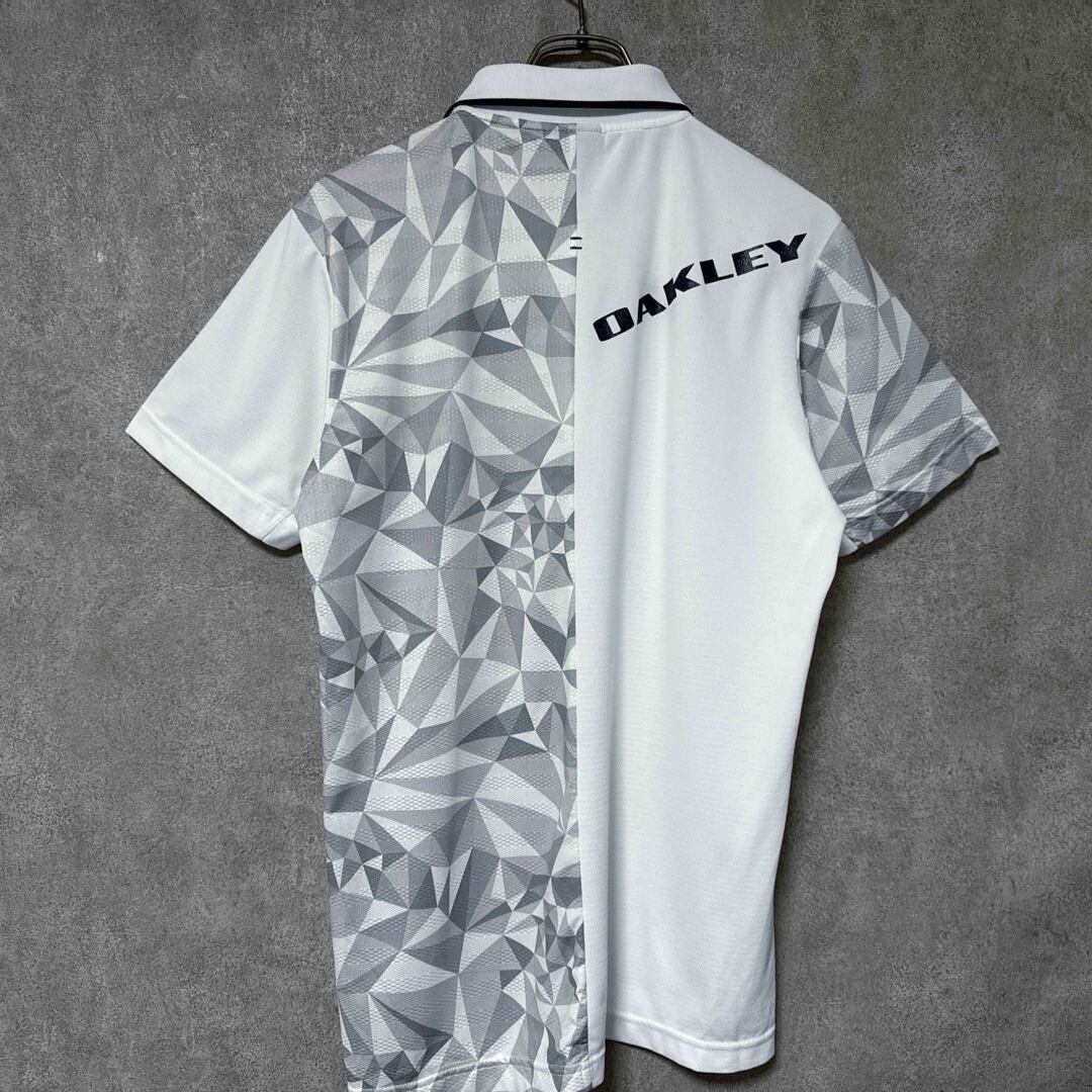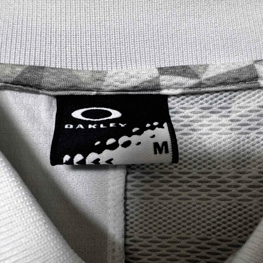 OAKLEY オークリー バックロゴ 半袖 ポロシャツ ホワイト グレー M メンズ ゴルフ ウェア