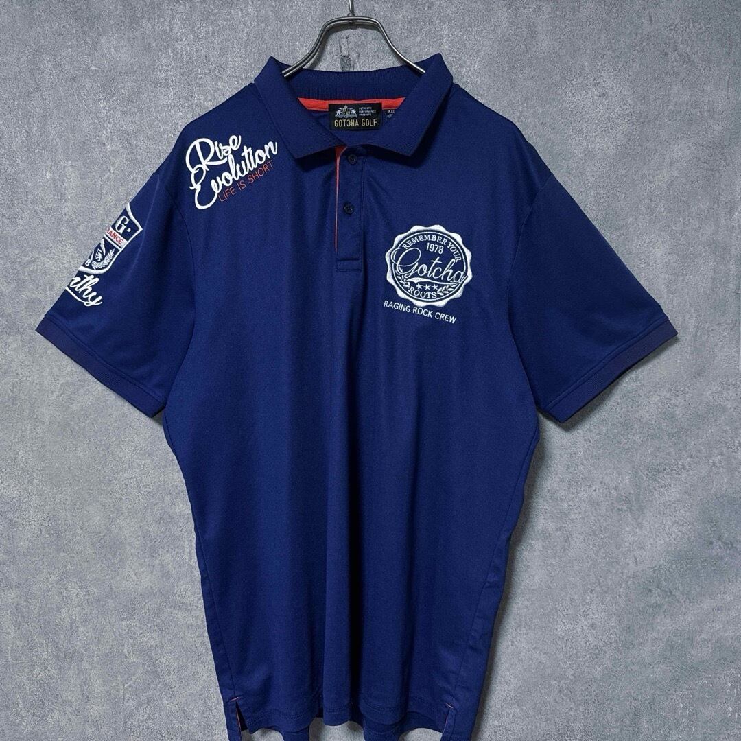 GOTCHA GOLF ガッチャゴルフ ロゴ 半袖 ポロシャツ ネイビー XXL メンズ ビッグサイズ 大きいサイズ ゴルフ ウェア