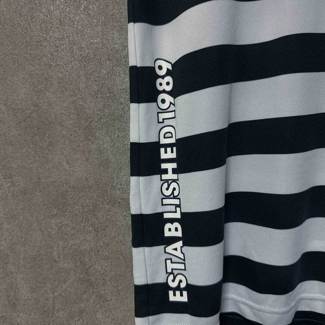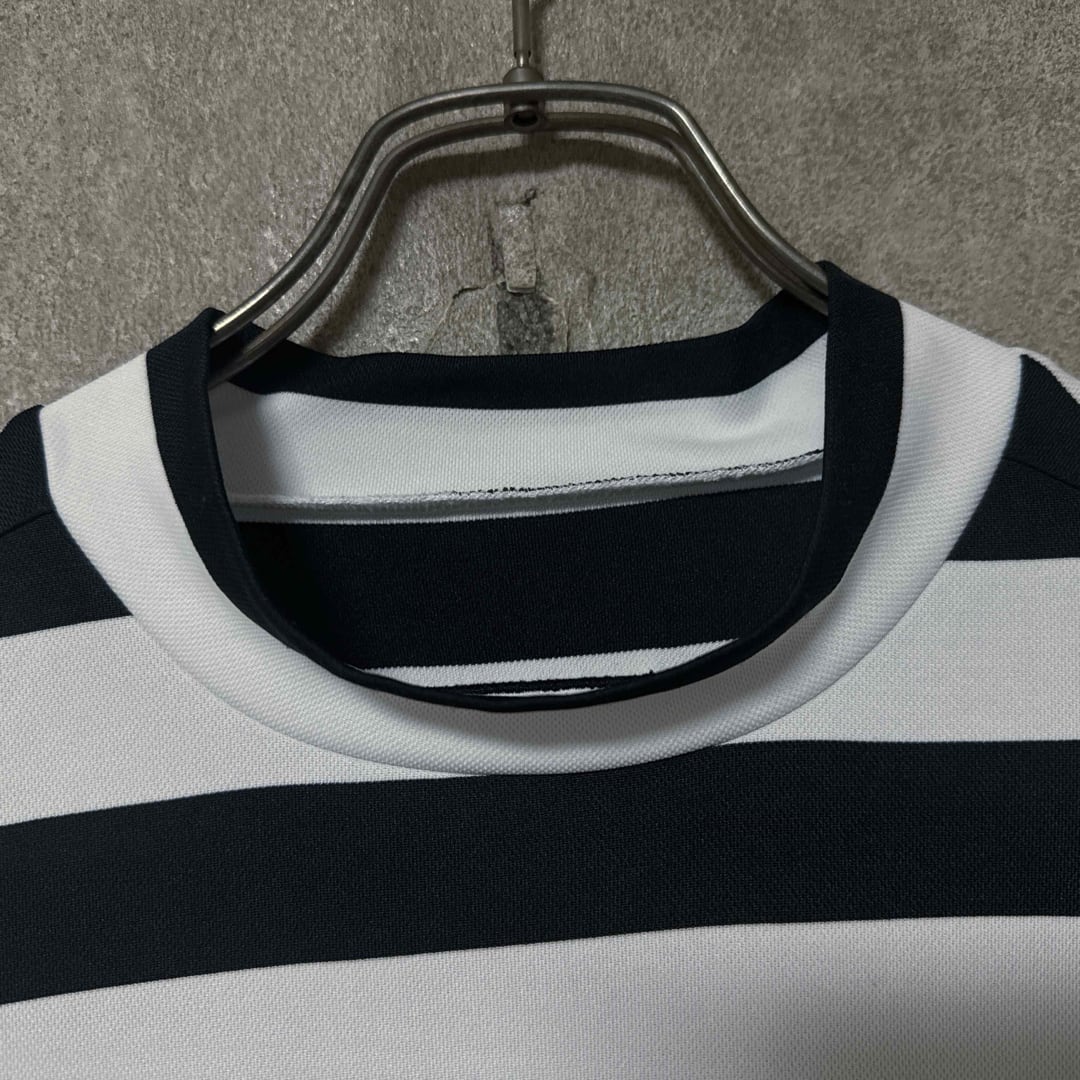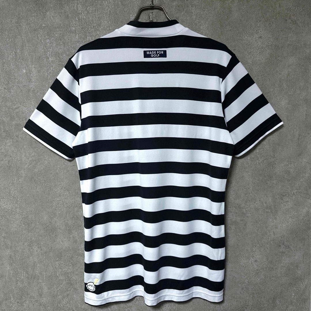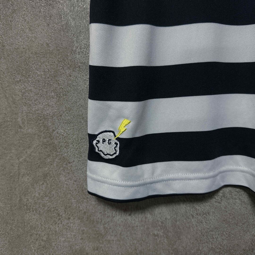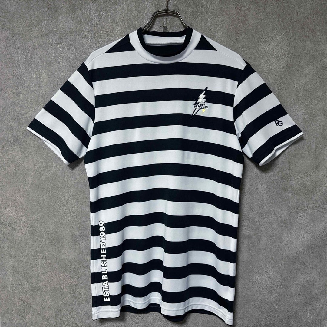 黒×白の太ボーダーが目を引く、PEARLY GATESの半袖ゴルフシャツです。
