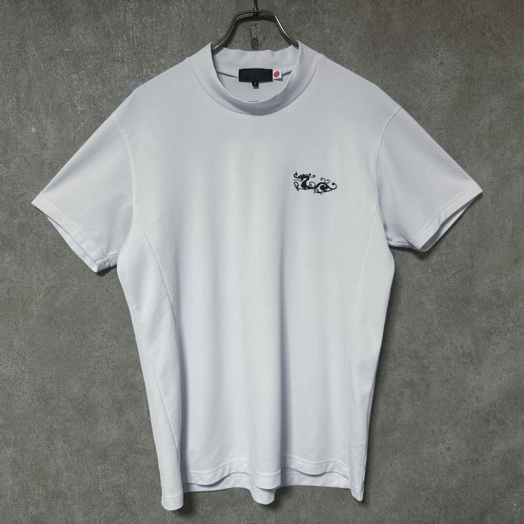 DWD ダンスウィズドラゴン ビッグロゴ 半袖 モックネック シャツ ホワイト メンズ ゴルフ ウェア 人気 デザイン