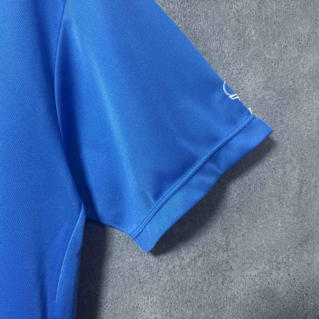 Russeluno ラッセル 半袖 ストーン モックネック シャツ ブルー L メンズ 男性 スポーツ ゴルフ