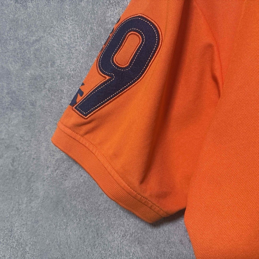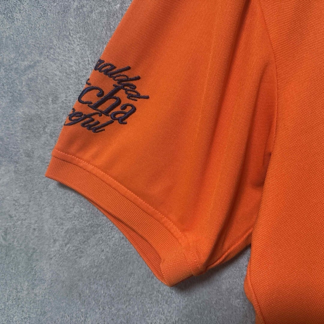 発色の良いオレンジカラーに、胸元や袖のロゴプリントが映えるGOTCHA GOLFの半袖ポロシャツです。春夏のラウンドや練習場で、明るく存在感のあるゴルフコーデを楽しみたい方におすすめ。大きめサイズでゆったり着たい方にも合う1枚です。