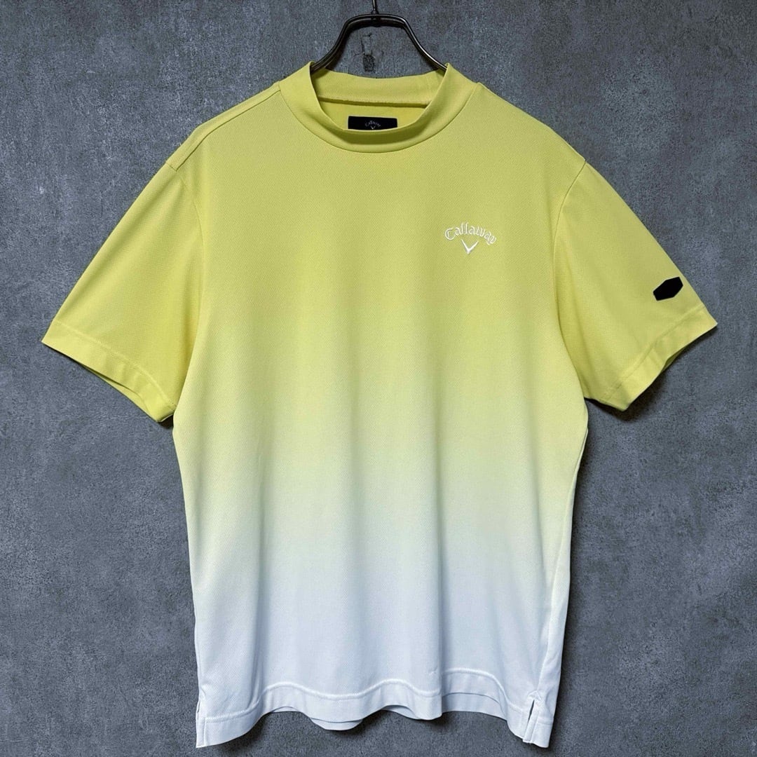 Callaway キャロウェイ グラデーション 半袖 モックネック イエロー シャツ メンズ ゴルフ ウェア 美品