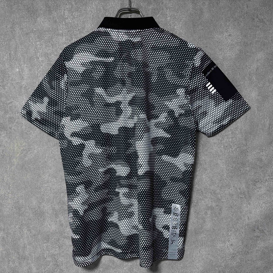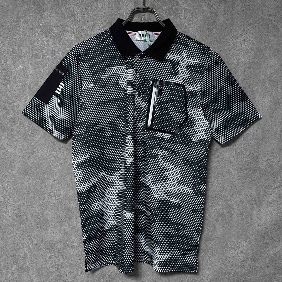 BBCO ビビコ ドット カモフラ柄 総柄半袖 ポロシャツ ブラック 46 メンズ ゴルフ ウェア 美品